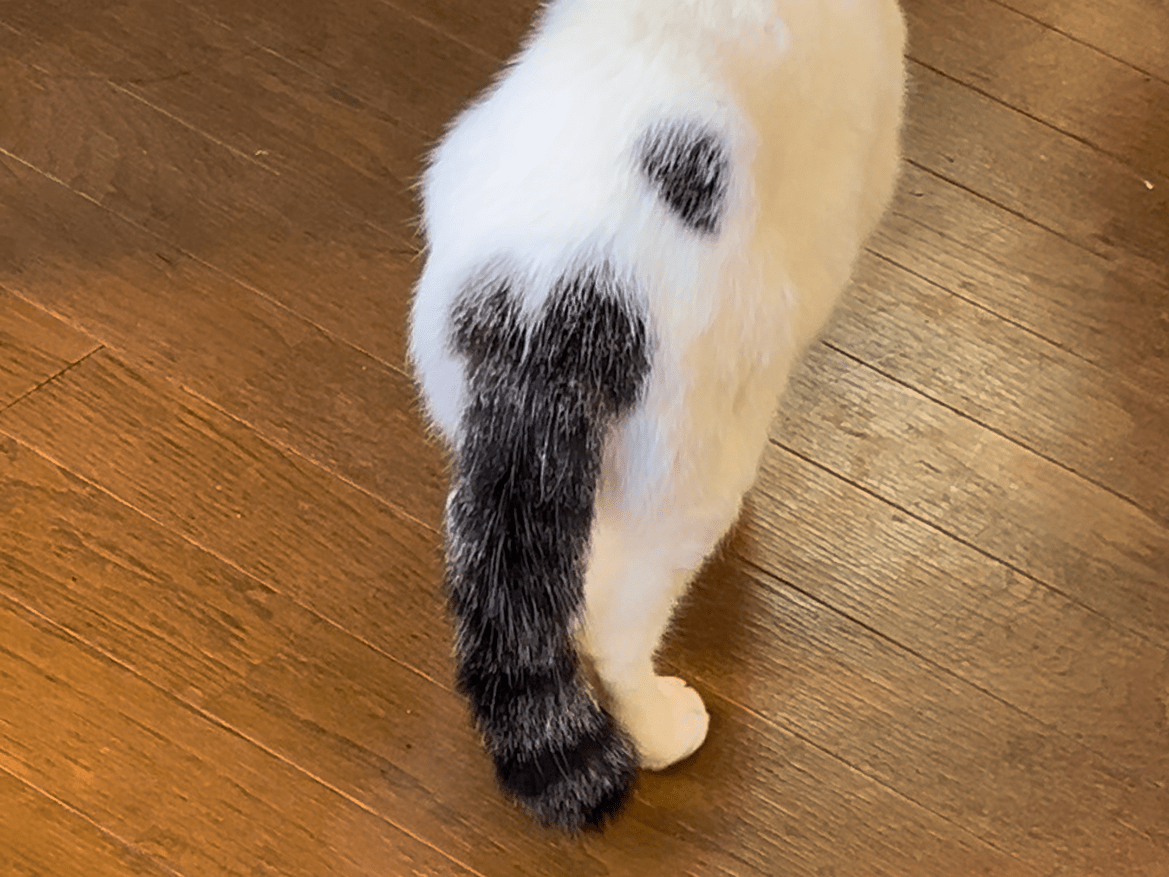 元野良猫で黒と茶色のハチワレ模様の猫を探しています。しっぽはかぎしっぽで黒く、おしりに黒い丸模様が一つだけあります。
