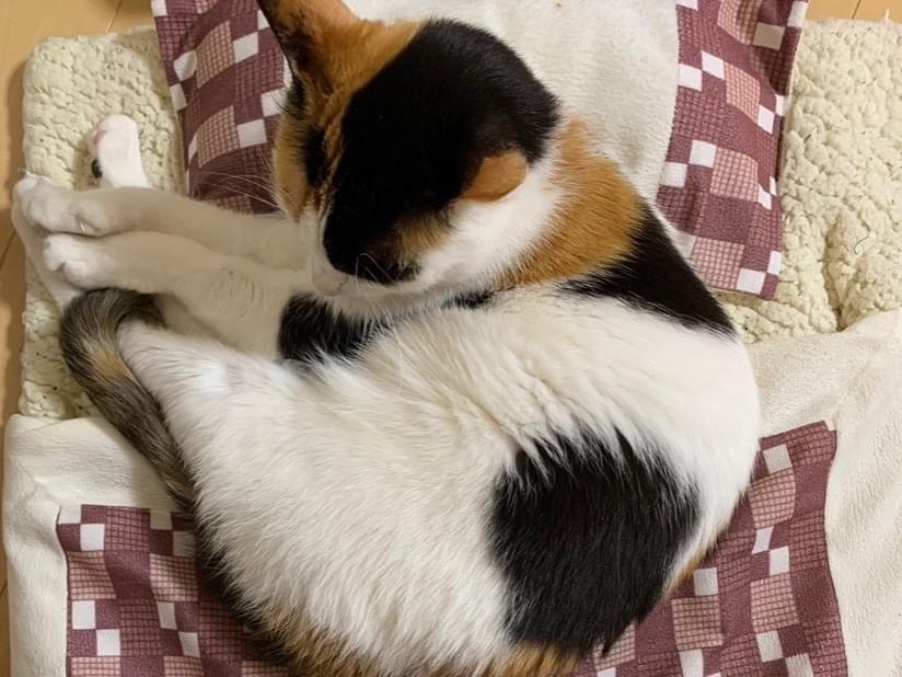 白が多めの三毛です。