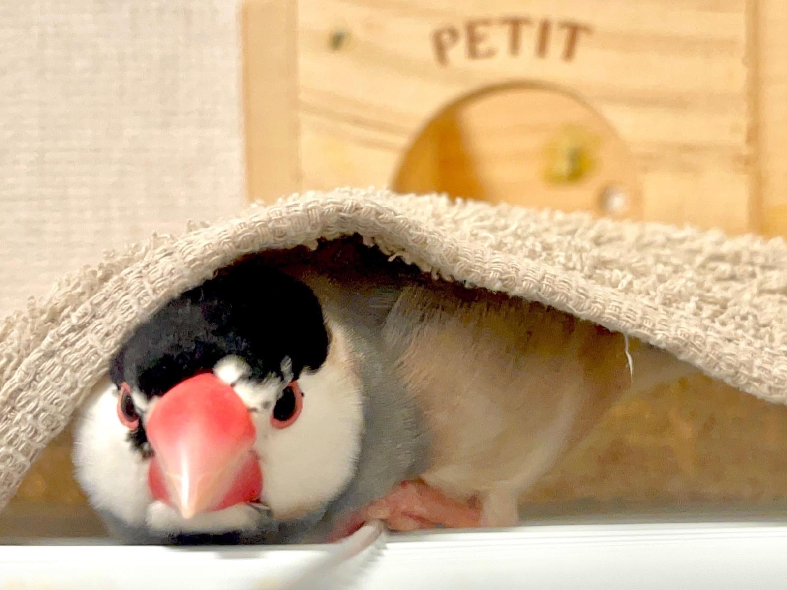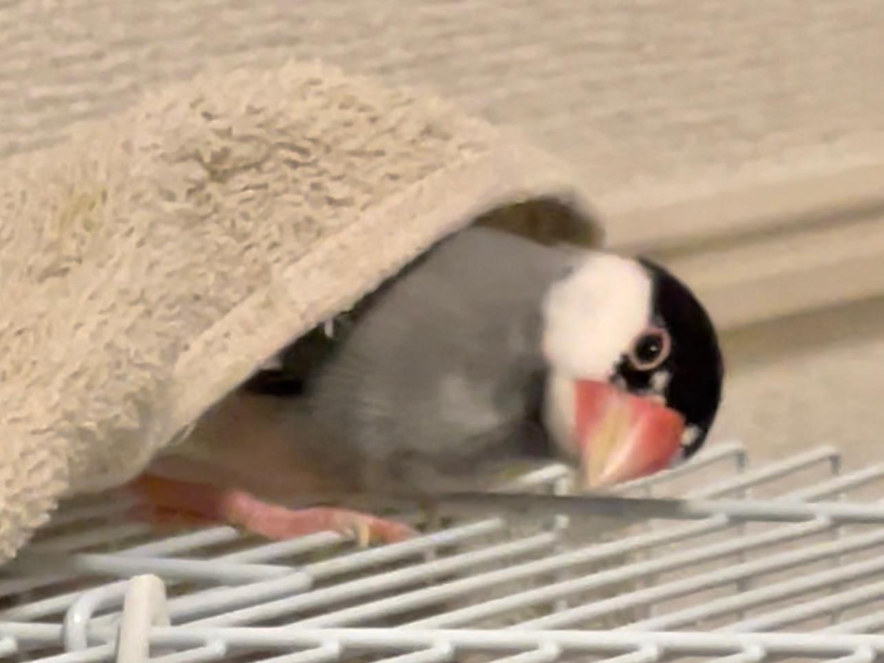 引越し作業中にゲージが開いていて迷子になってしまいました。手乗り文鳥です。