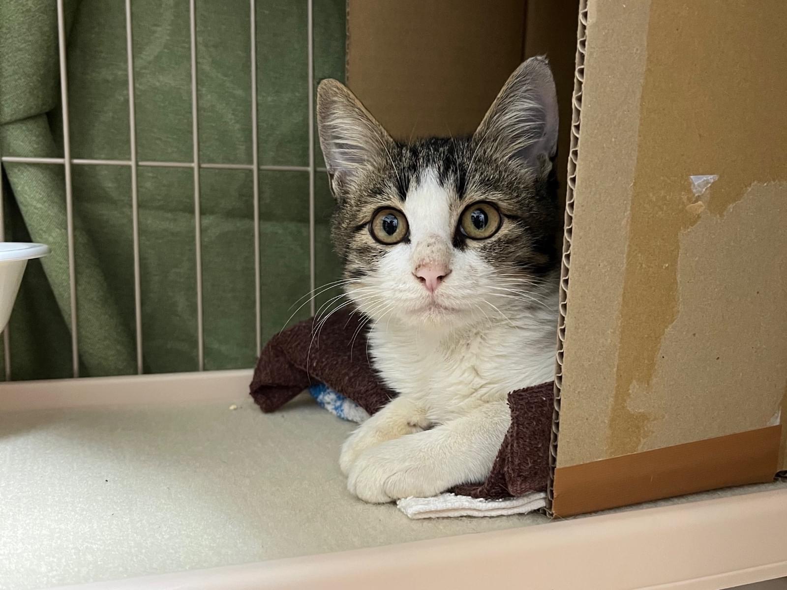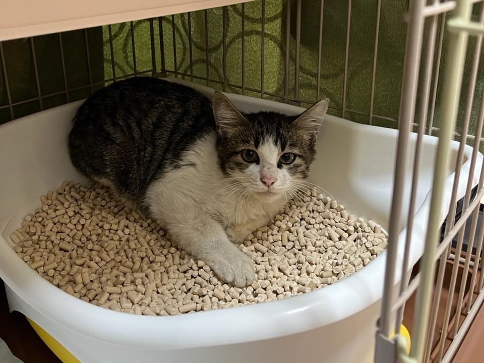 キジ白のオスの子猫(3ヶ月くらい)です。