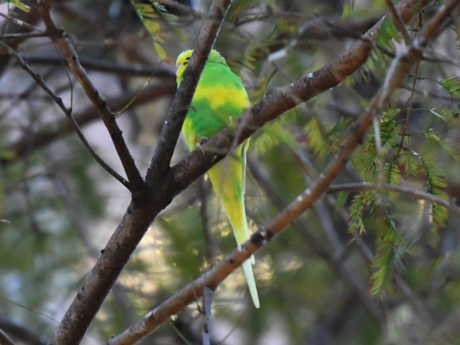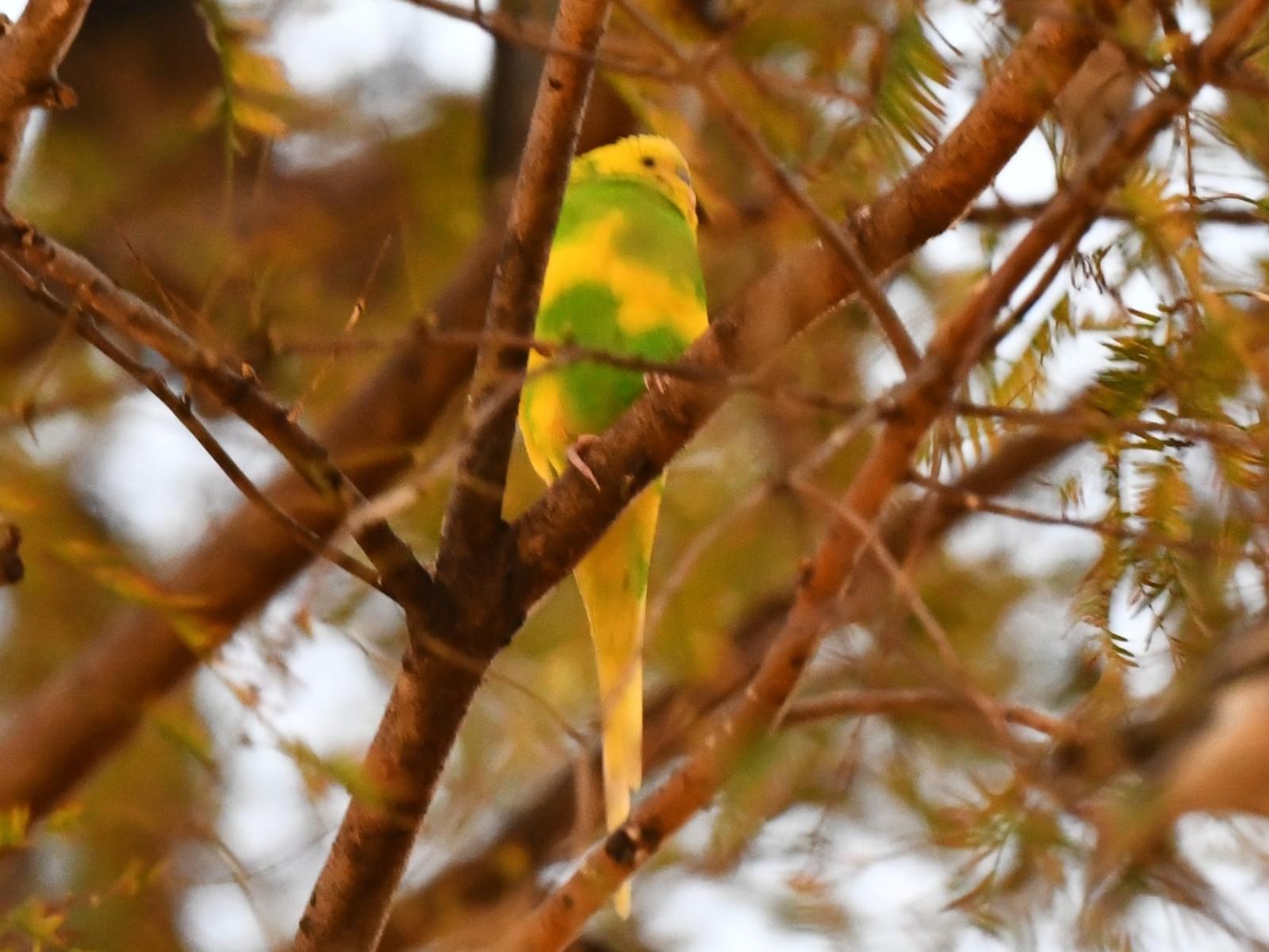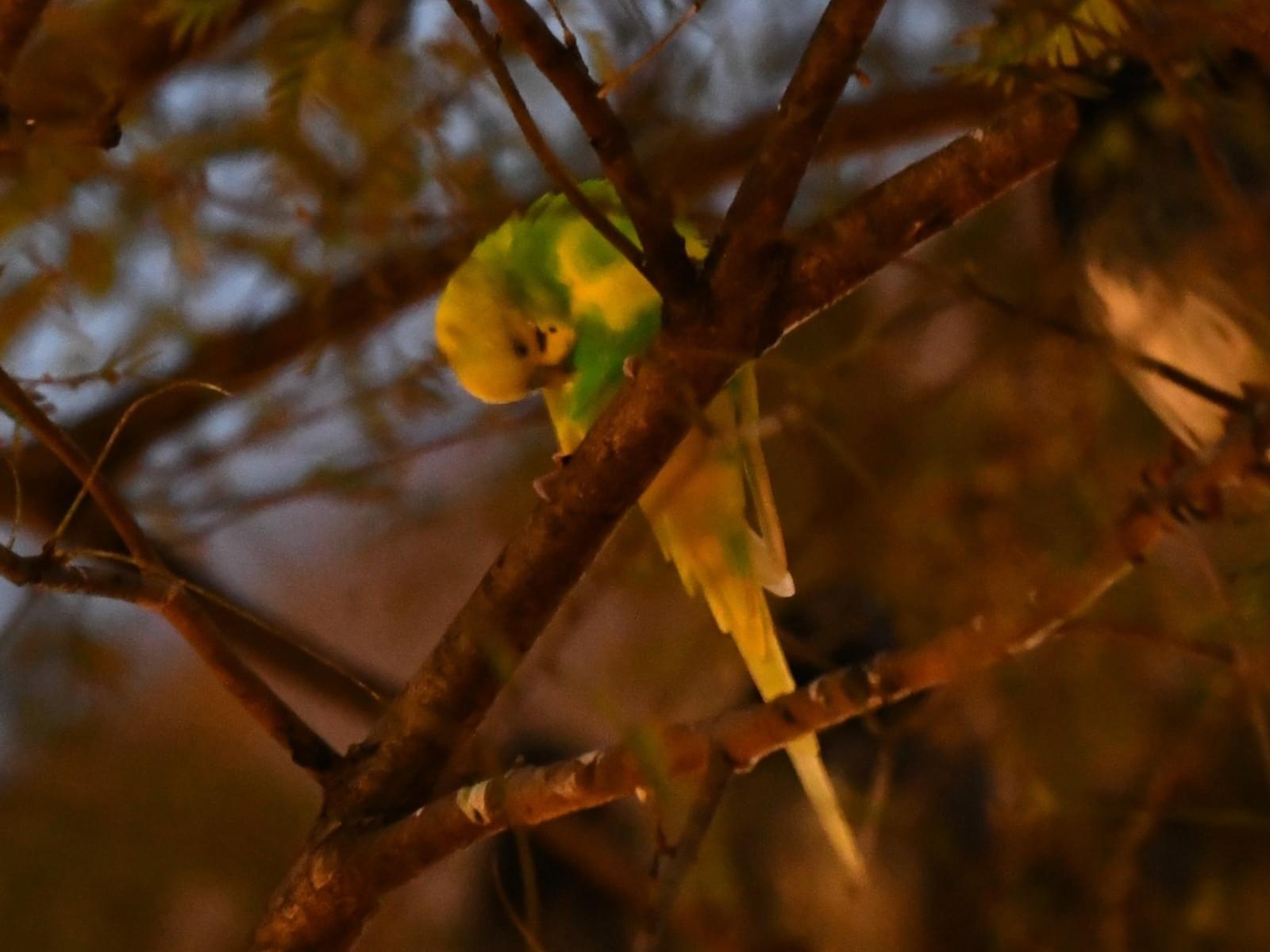 黄色と緑のセキセイインコを目撃しました