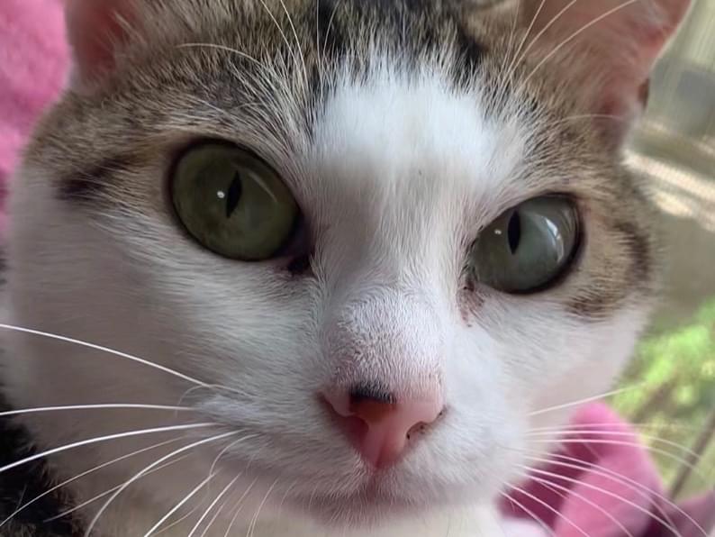 カギしっぽのメス猫です。緑の首輪をしています。避妊手術済み。鼻に黒い模様が入ってます。家族以外には人見知りなため、どこかに隠れていても出てこないかもしれません。