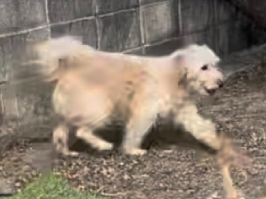 クリーム色・首輪無し・垂れ耳・尻尾長め・長毛・人は好きですが警戒心強め・名前を呼ぶと近づく可能性があります。