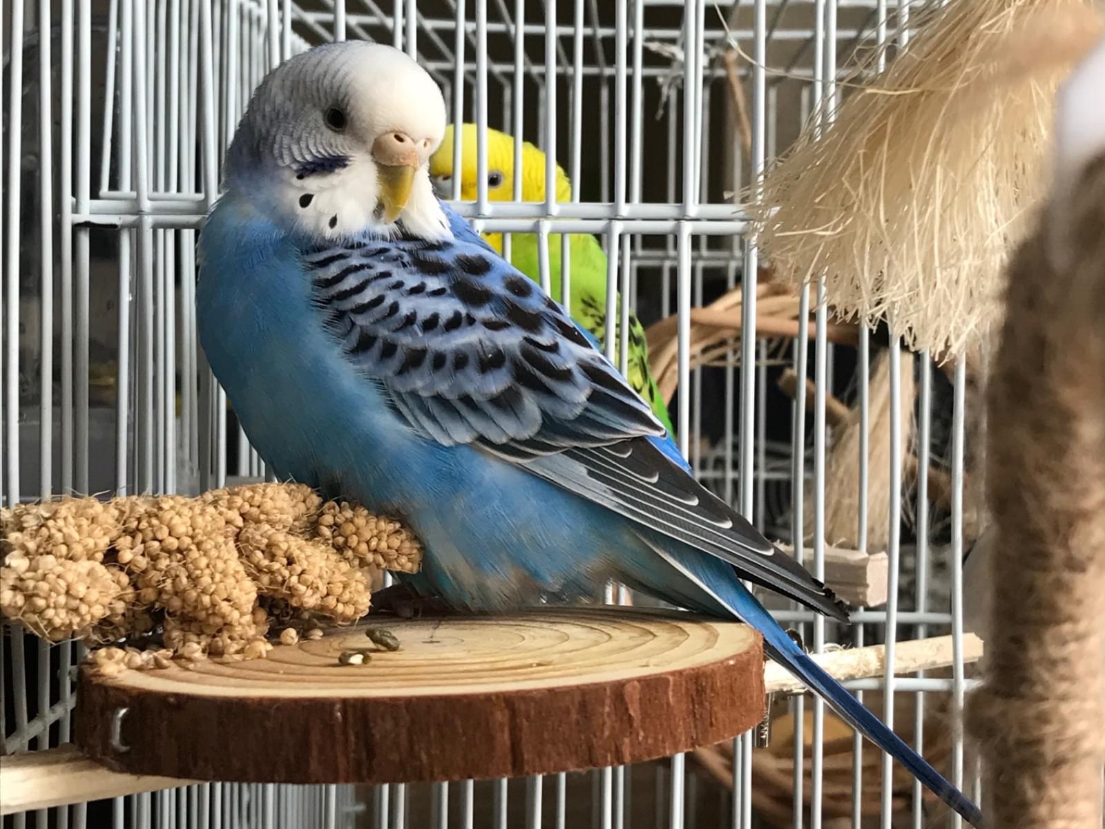 ルリちゃんと呼ぶと、振り向いたり飛んできたりと反応します。人の言葉は真似できませんが、音楽に合わせてさえずります。手が苦手ですが、寂しがり屋で肩や頭に乗るのがすきです。警戒心がつよく臆病で噛み癖あります。