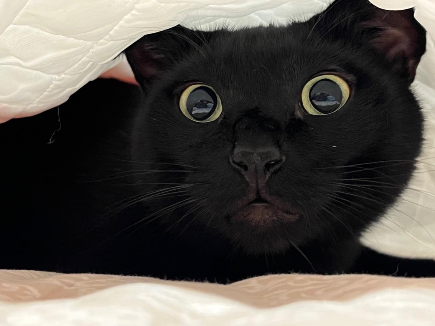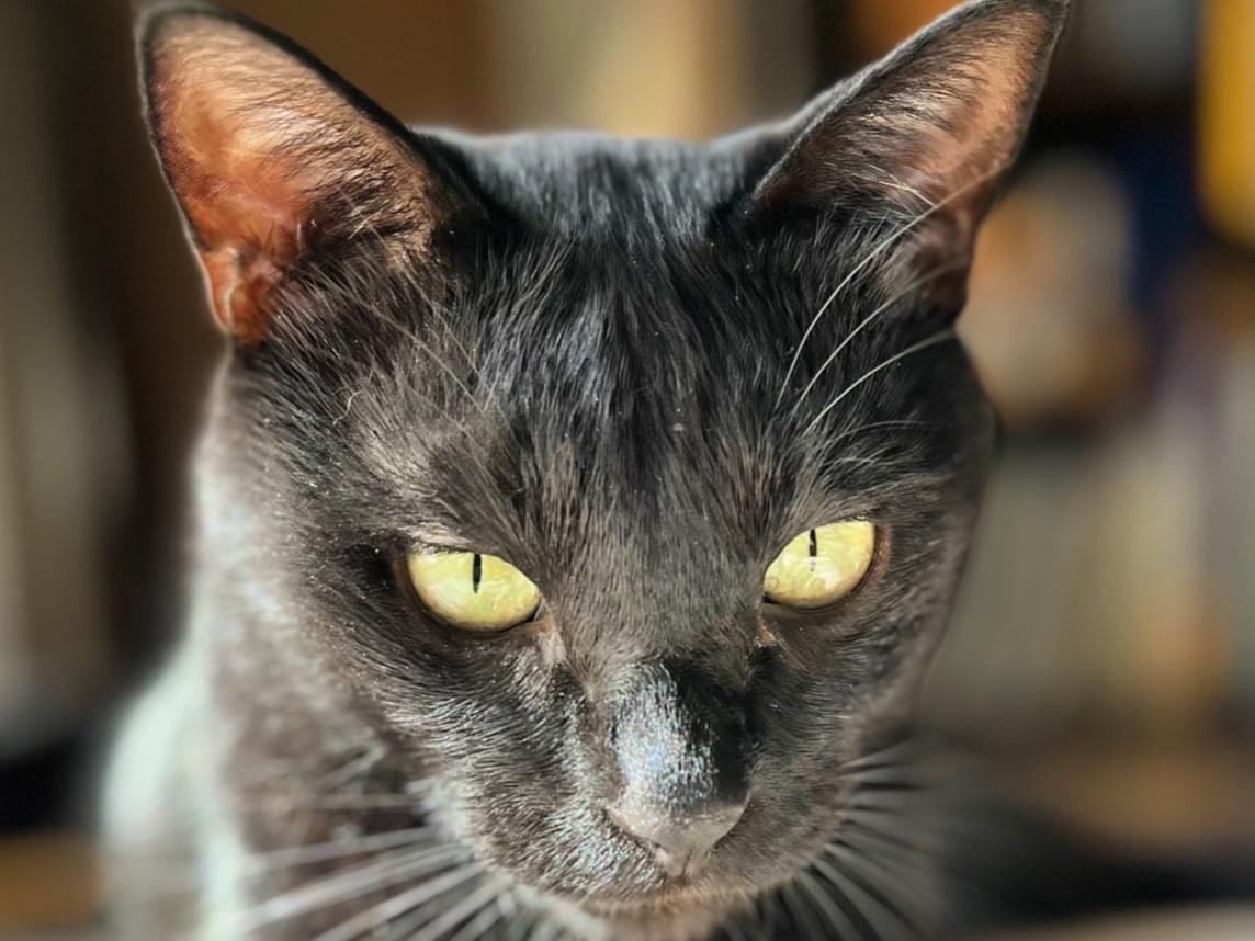しっぽが長く、目は黄緑です。5kgで普通体型です。首輪はしていません。普段は家猫で人懐っこいですが、外は初めてなので怯えているかと思います。