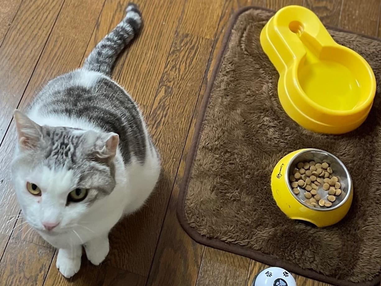 毛は白とグレーが混ざっています。