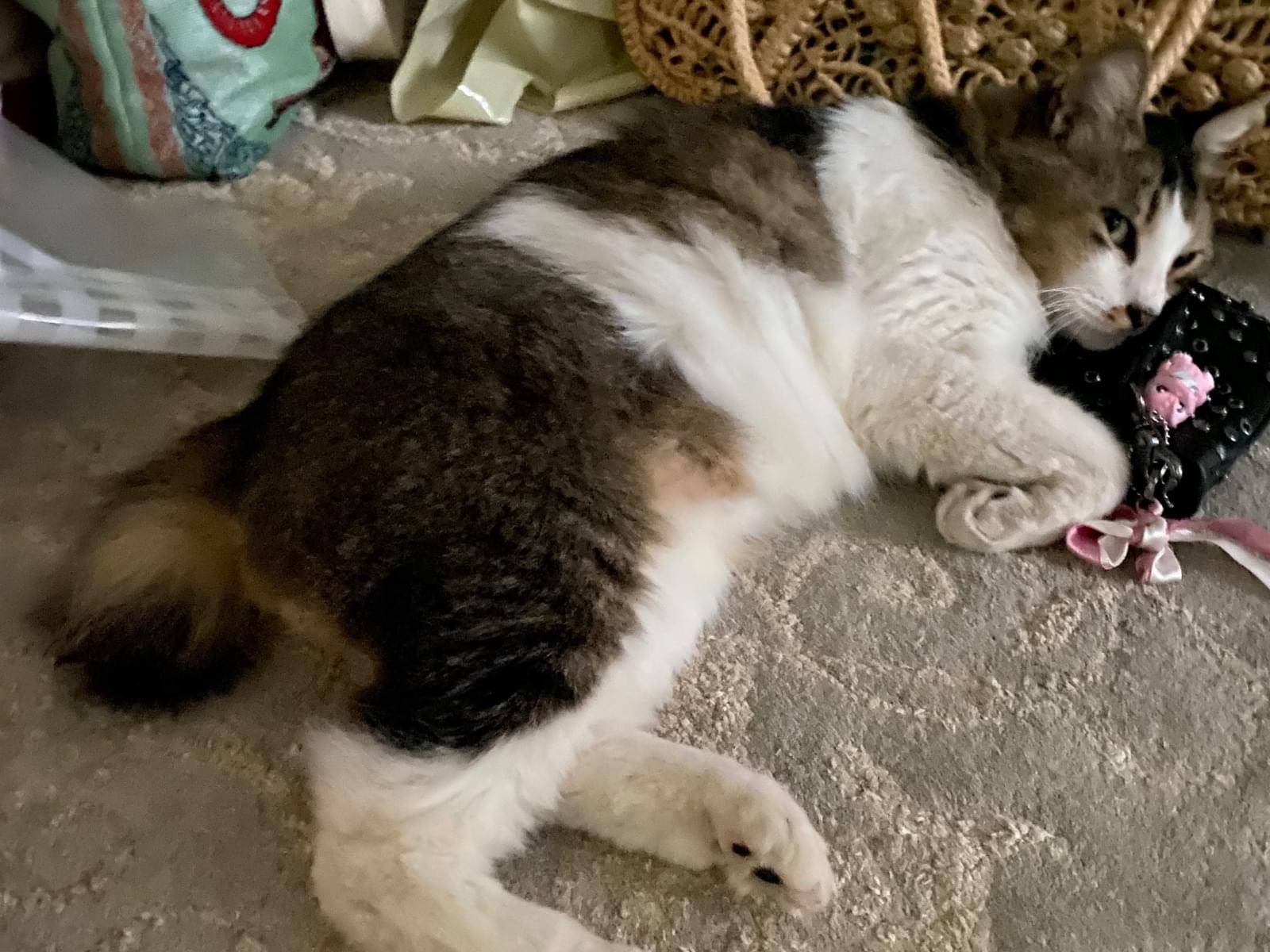 茶白 毛長 鼻に少し傷あり うさぎのしっぽのような猫を探してます。