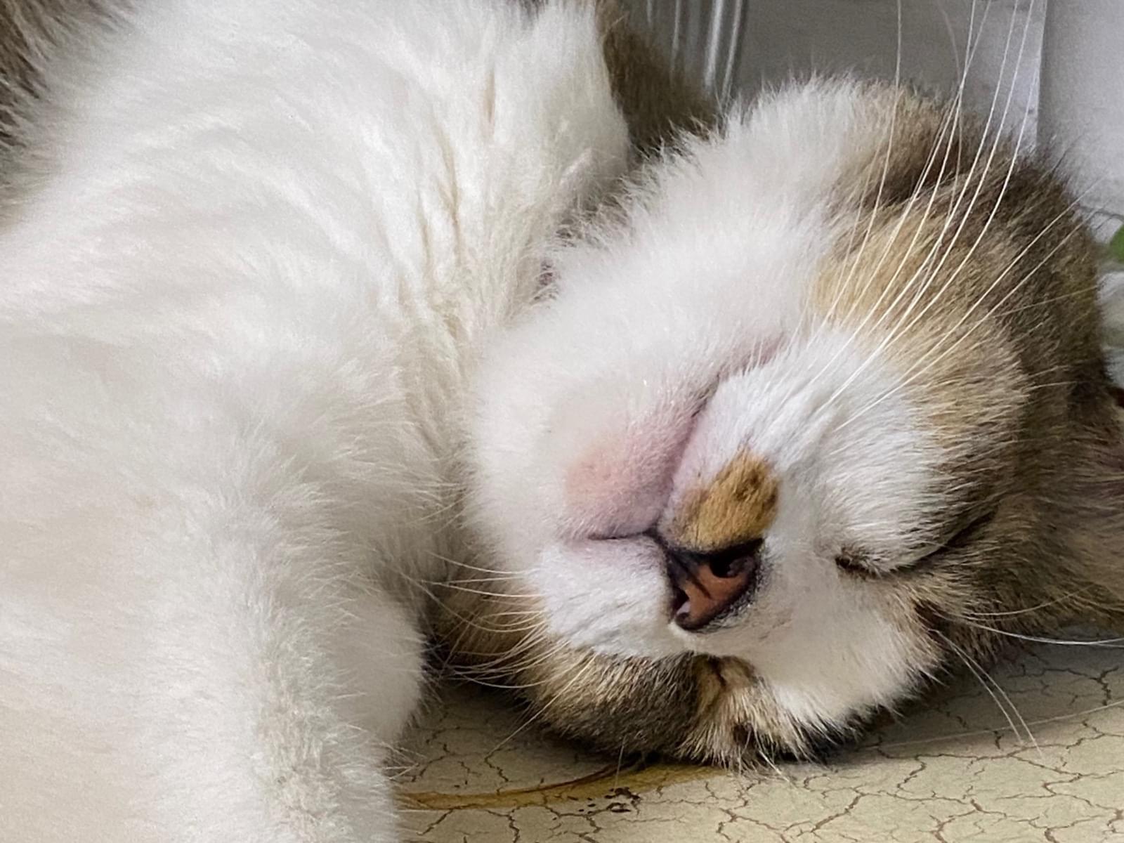 茶白で毛長です。鼻に引っ掻き傷があります。