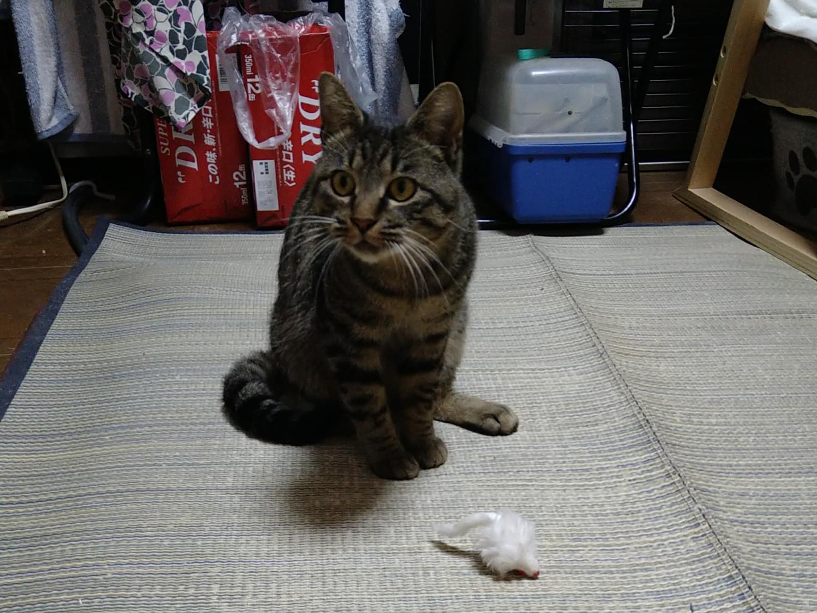 勝手口から脱走した模様。首輪はナシ。少し黒が強いキジトラです。♂のコの割に♀のコみたい声で鳴きます。人に警戒します。ネコ、イヌには動じません。