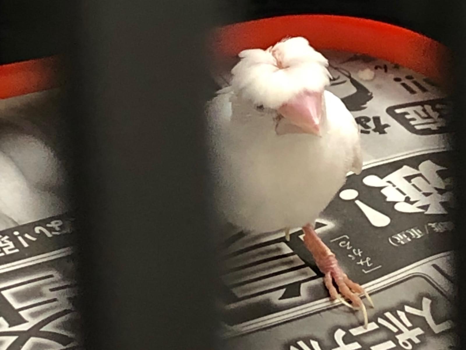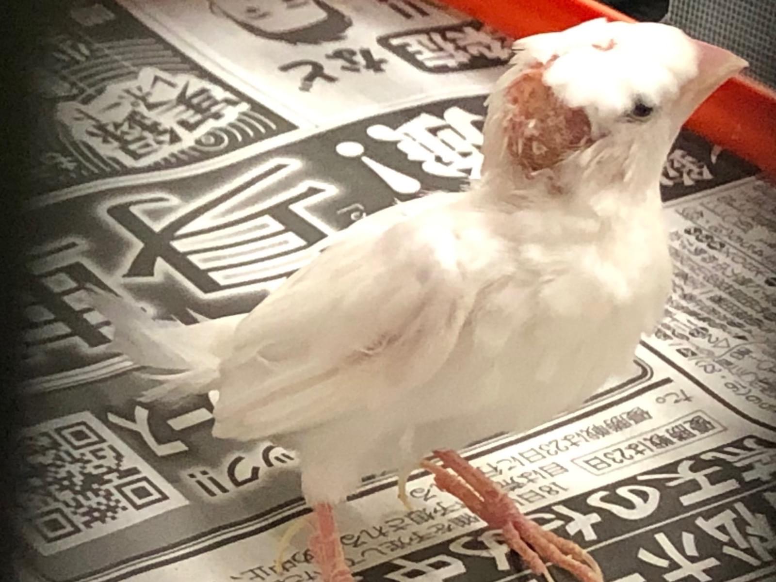 後頭部から背中にかけて怪我と羽根がむしられたような跡があります