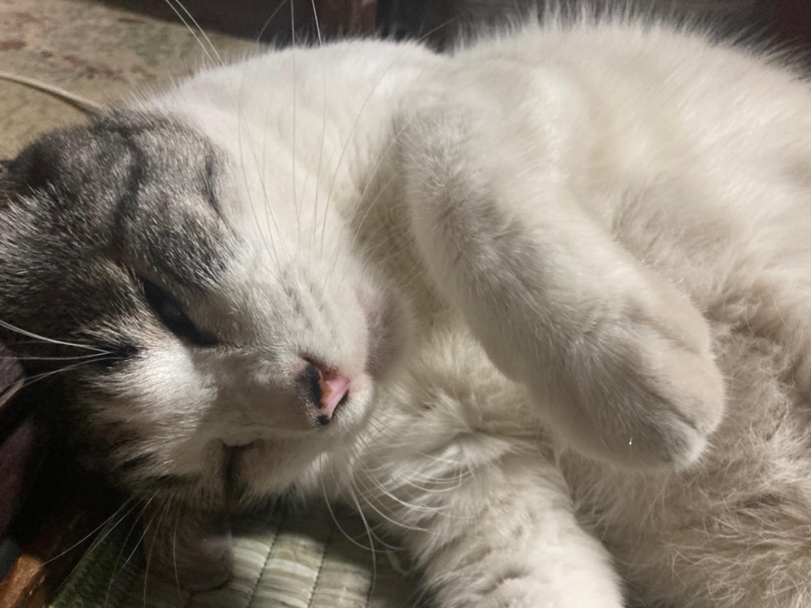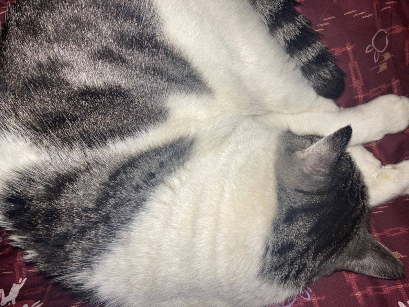 左脚の付け根、鼠径部に膨らみがあります。体毛に隠れて触れないとわかりません。病理検査で良性腫瘍。