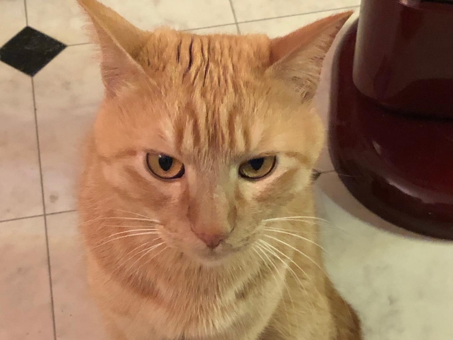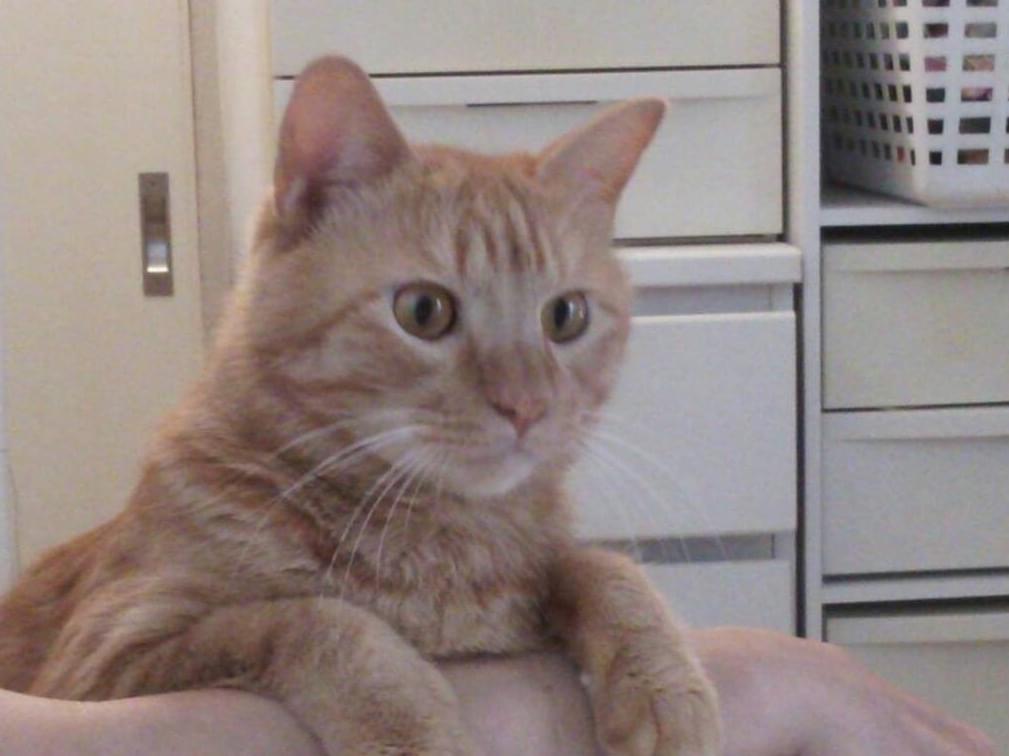 全身茶トラ。細身。尻尾が真っ直ぐでかなり長い男の子です。去勢済み。マイクロチップ入り。