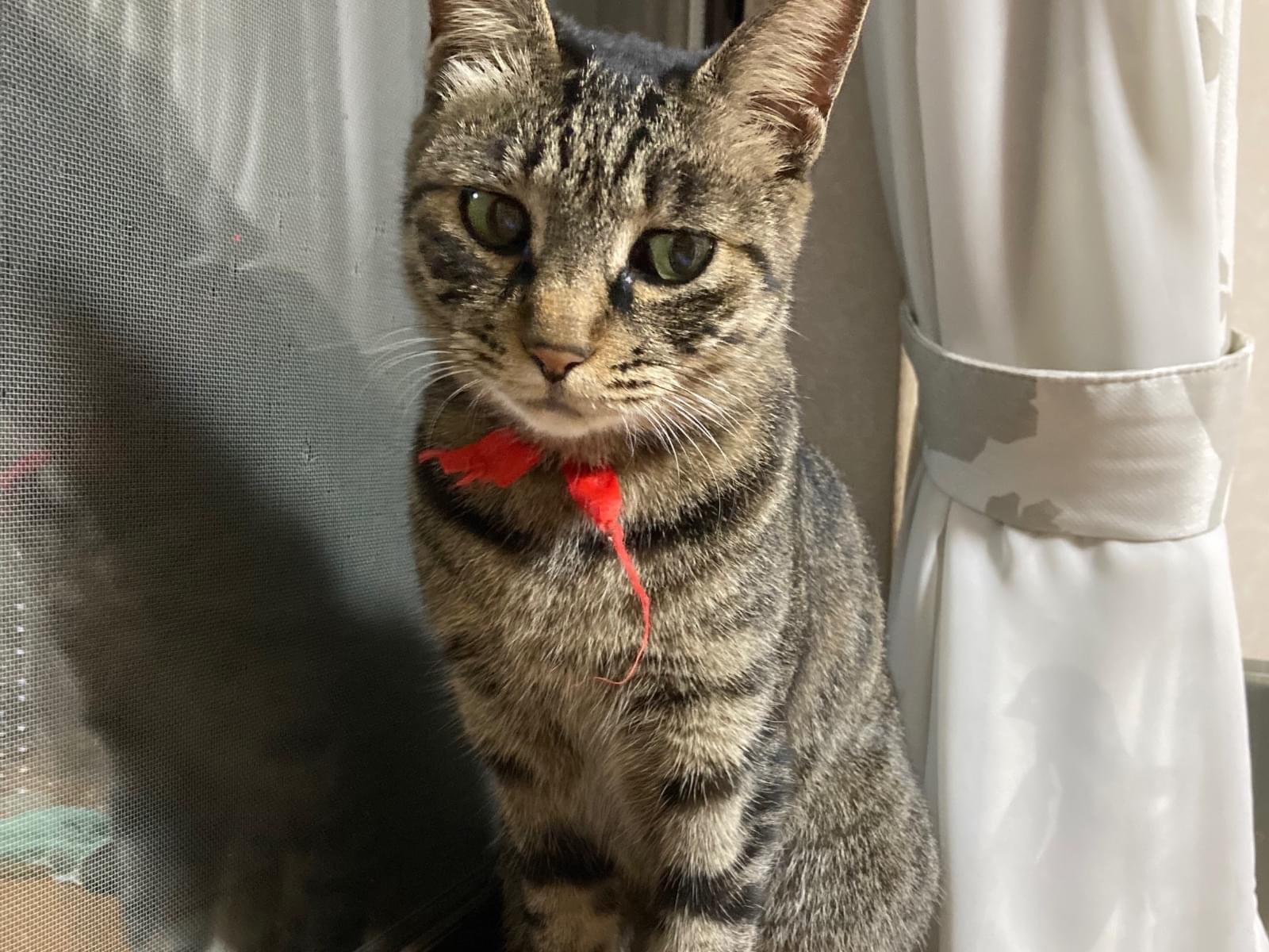キジ猫、よく鳴き、人懐こいです。首輪なし。