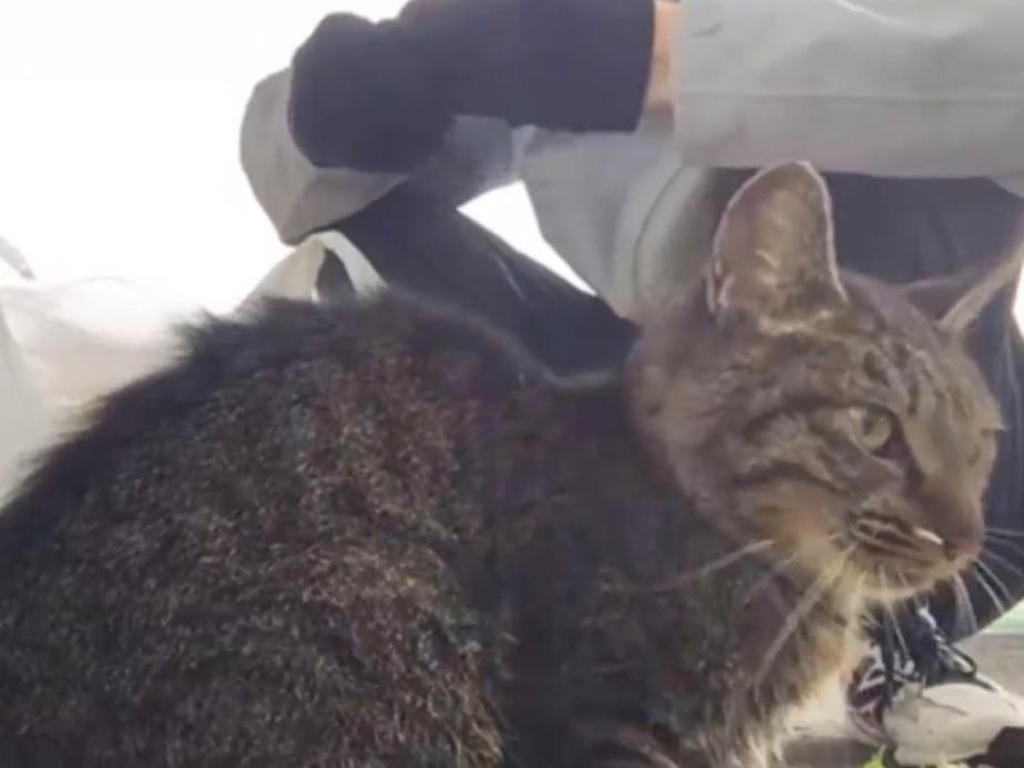 目撃日時は、2023年12月17日(日)午前10時45分頃、大館市大田面で見つけました。建物の壁寄りに寒そうに小さく丸まってじっとしていました。近寄ると人懐っこくすぐに足元に来て落ち着いた低い鳴き声で「ニャ〜」と鳴いていました。色は黒と茶色っぽく縞模様も少し入っているキジトラのような感じに見えました。お腹が空いているかも知れないので塩おにぎり、野菜の煮物、かつお節を買って与えてみたところ食べれるのを選びながら勢いよく半分ほど食べていました。お水も紙皿で上げましたがそれは飲んでいませんでした。食べ終わるとすぐに入口の方に戻ってそこを定位置としているかのように小さく丸まりました。自分にはその様子が、誰かを探しているような待っているかのような見つけてもらいたくここを選んでいるような感じがしました。ここに居るんだという意思を感じたので餌だけ食べさせてそのまま自分はそれを尊重して帰りました。目立つところなので親子連れの方も通りかかったりして「かわいいネコちゃん」と言っていたので、早いうちにはぐれた飼い主様、お世話ができる方と巡り合ってもらえればいいなと思っております。近くなのでまた様子を伺えればそのとき世話をしておきます。寒さに耐えてよく頑張ってました。大切な命です。むやみに殺されることなくいい人と巡り合い、生きてもらいたいです。