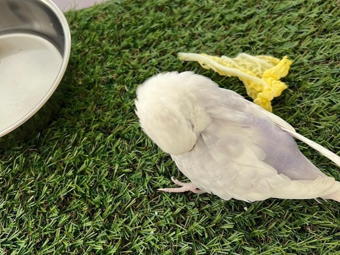 知り合いが江戸川区瑞江のさくら公園の生垣にて、白いセキセイインコを保護しました。
