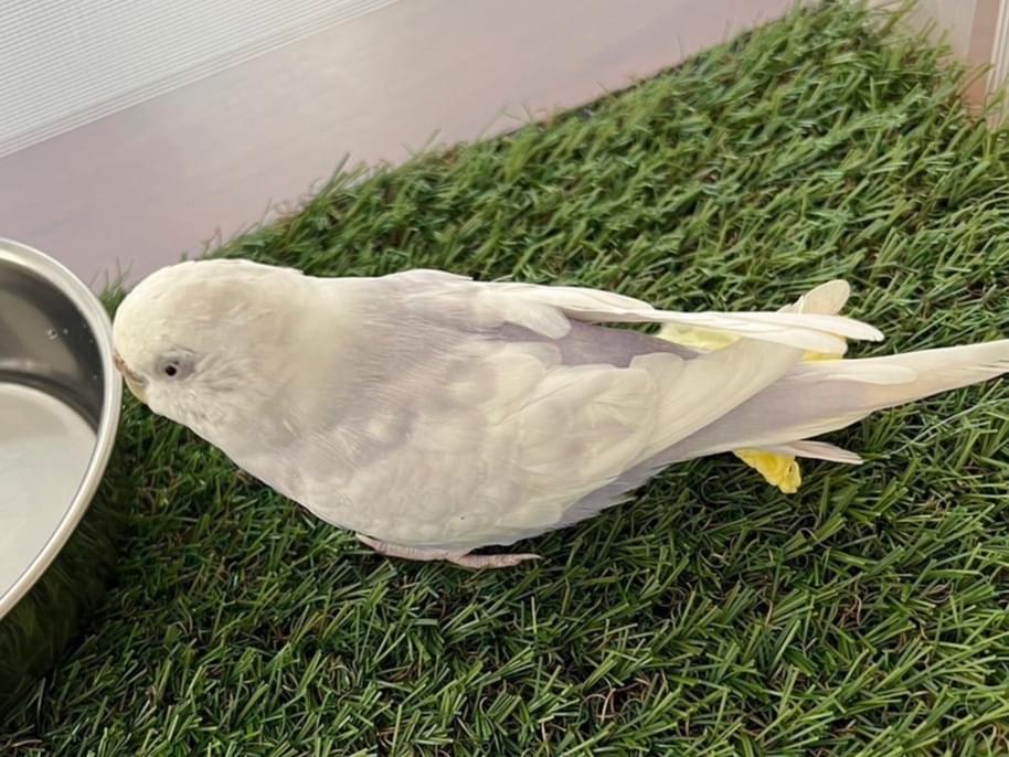 セキセイインコ、年齢不詳、白色、黄色い嘴