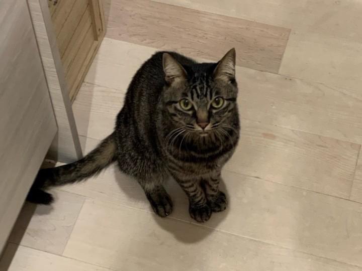 黒っぽいキジ虎の3歳の猫を捜しています。首輪はつけていません。背中にID付きチップが入っています。