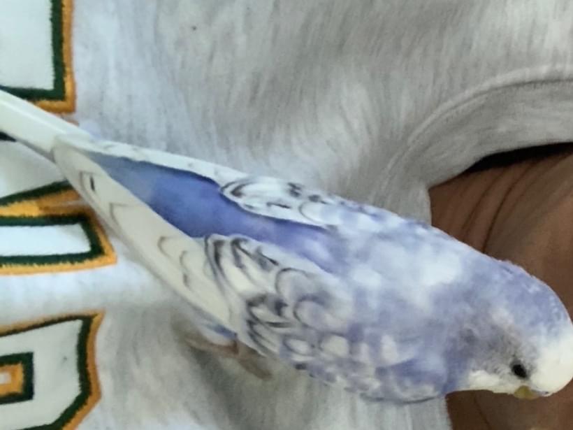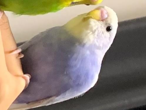 頭が白く背中に少し黒の点模様の入った水色のセキセイインコを探しています。