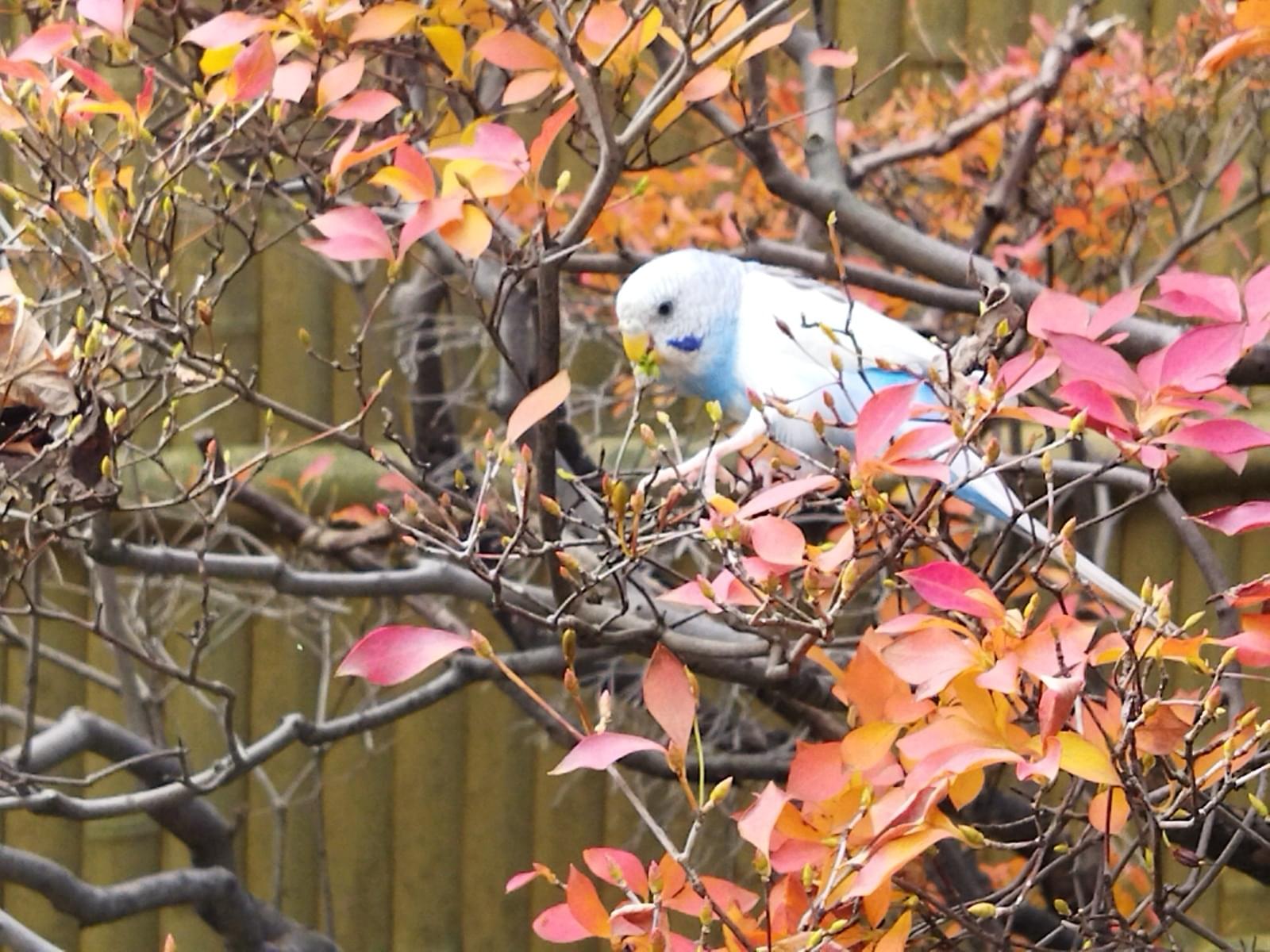 日中は自宅の中庭を自由に飛んで育った為、ゲージの中には寝るときだけ入っていました。