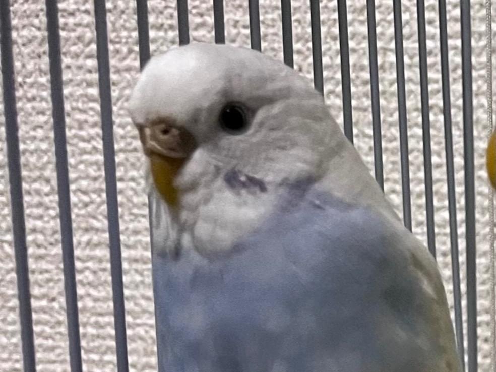 白くて丸く、胸と羽の内側だけ水色のインコを探しています。