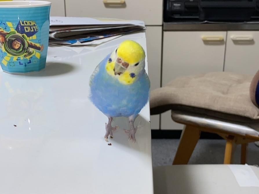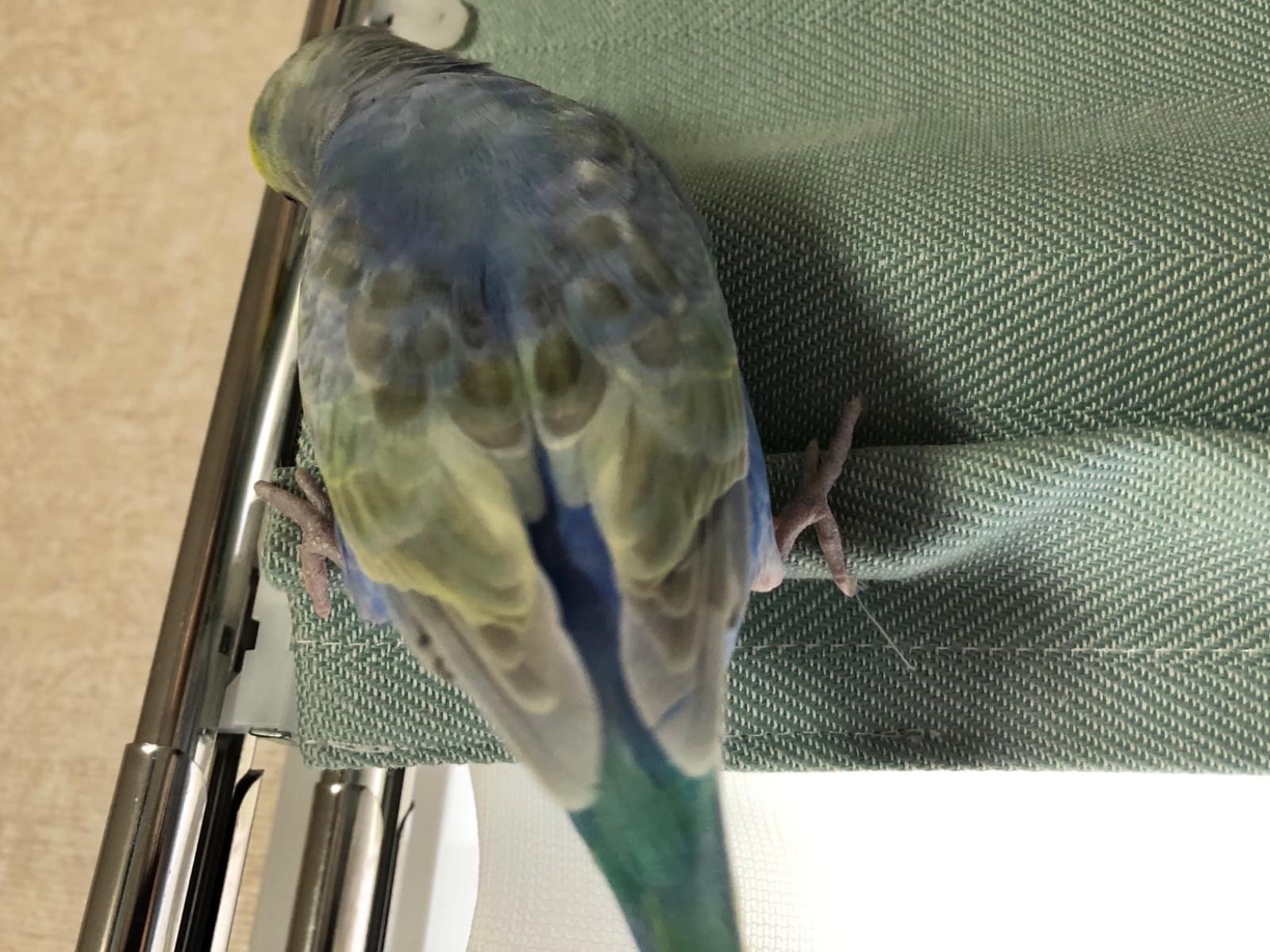 セキセイインコのレインボーです。ブルー系です。名前はマメ。1月2日の13時頃、服にしがみついていたことに気づかずに窓を開けてしまい逃げてしまいました。手乗りです。あまり名前を呼んでも反応はしません。アゴの斑点は1つずつあります。鼻の回りが茶色になってます。