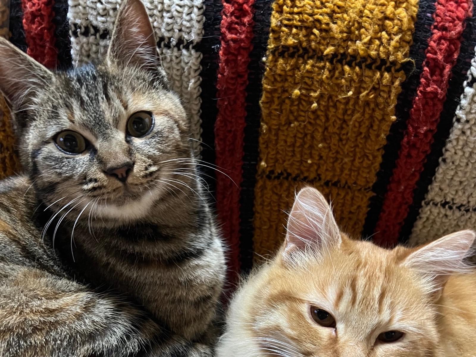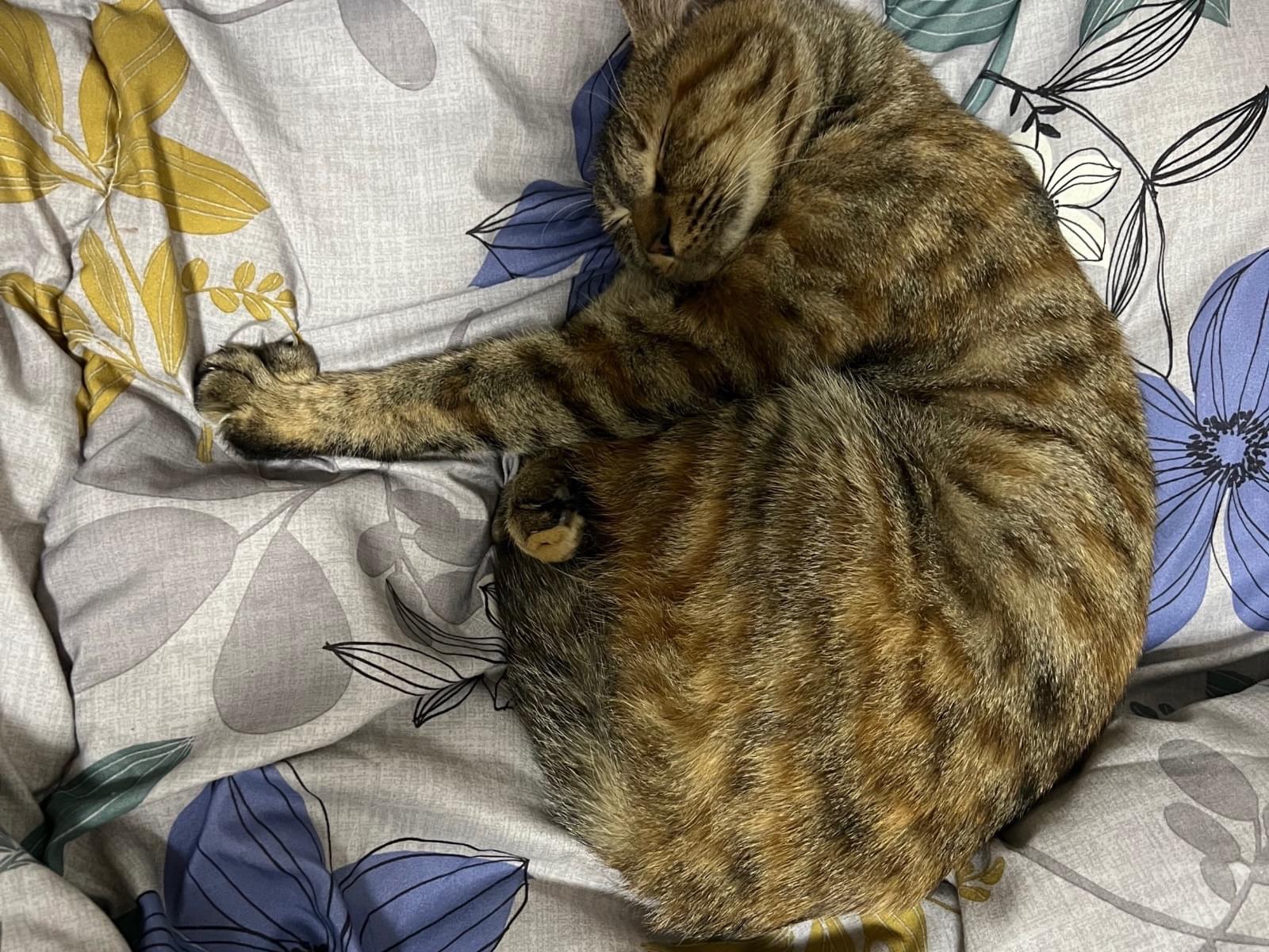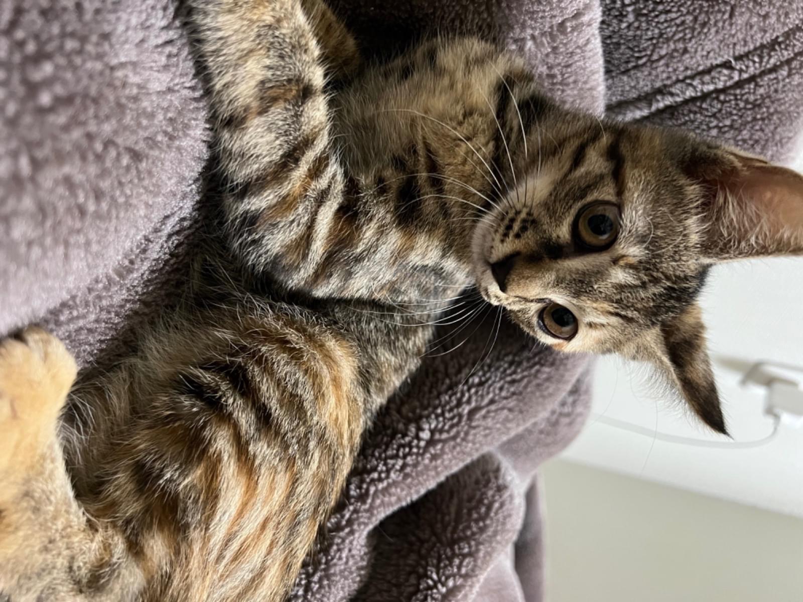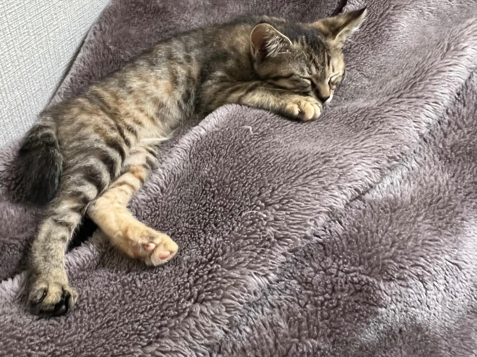 しっぽが普通の猫より短めで先っちょが丸っこいです