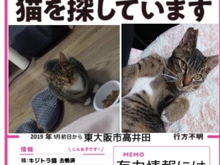 ホーム迷子猫大阪府キジトラ猫を探してい…キジトラ猫を探しています管理編集するポスター掲載終了最終更新日時:2020/02/02 22:29写真情報用件迷子名前クロム性別オス年齢7ヶ月場所大阪府 東大阪市高井田発生日時2020年1月1日(水)飼い主ねこちゃん説明・キジトラ(こげ茶色) ・首輪なし ・右耳カットあり ・白たび ・去勢済み連絡先URLtwitter.com/0J0AF5RKGFO0tXu掲示板情報交換のための掲示板です。ユーザーからの情報提供、オーナーからの連絡などにご利用下さいませ。コメントを書き込む高井田で似ている子がいます。橋本返信0件2021/06/21 21:25