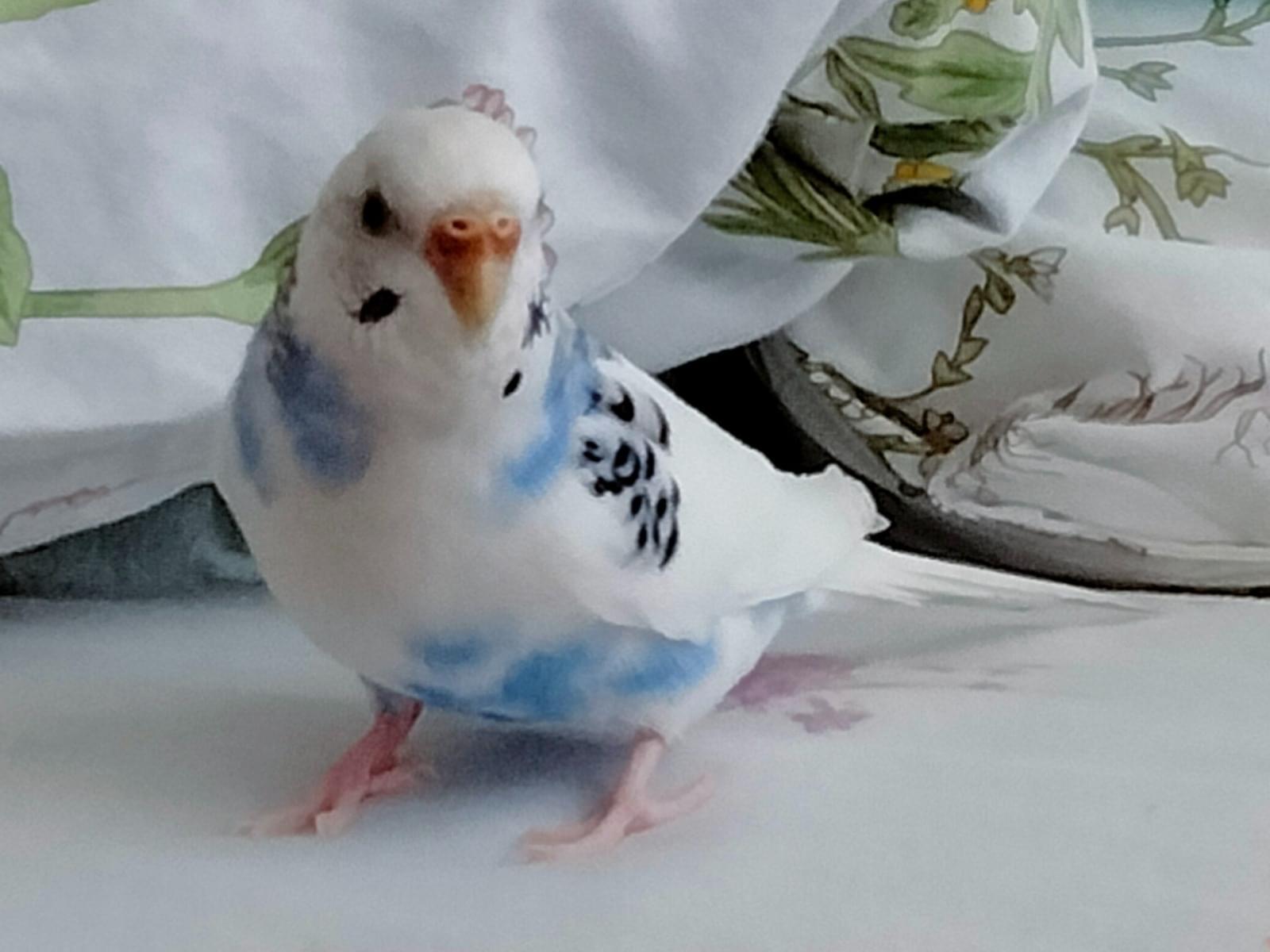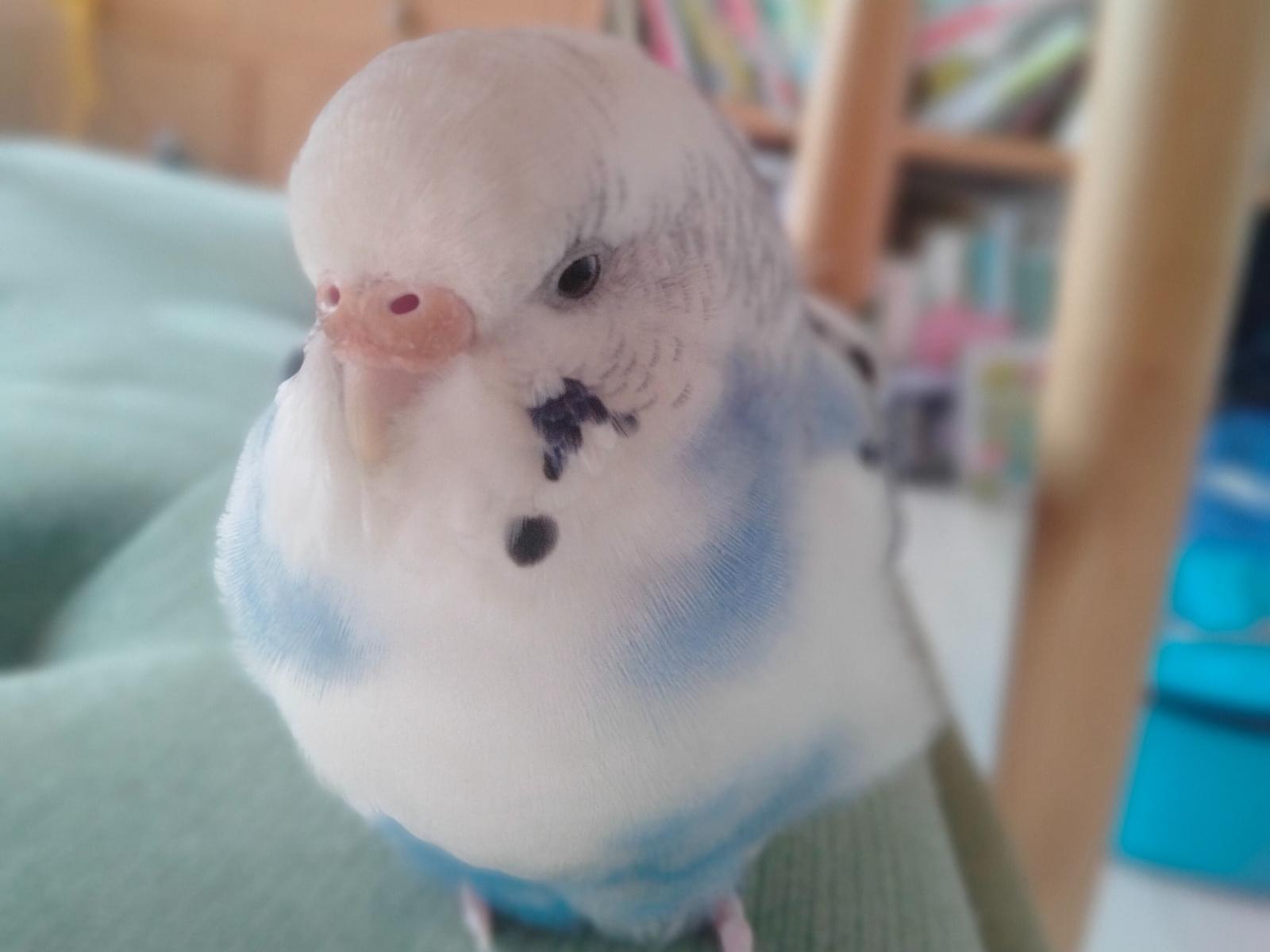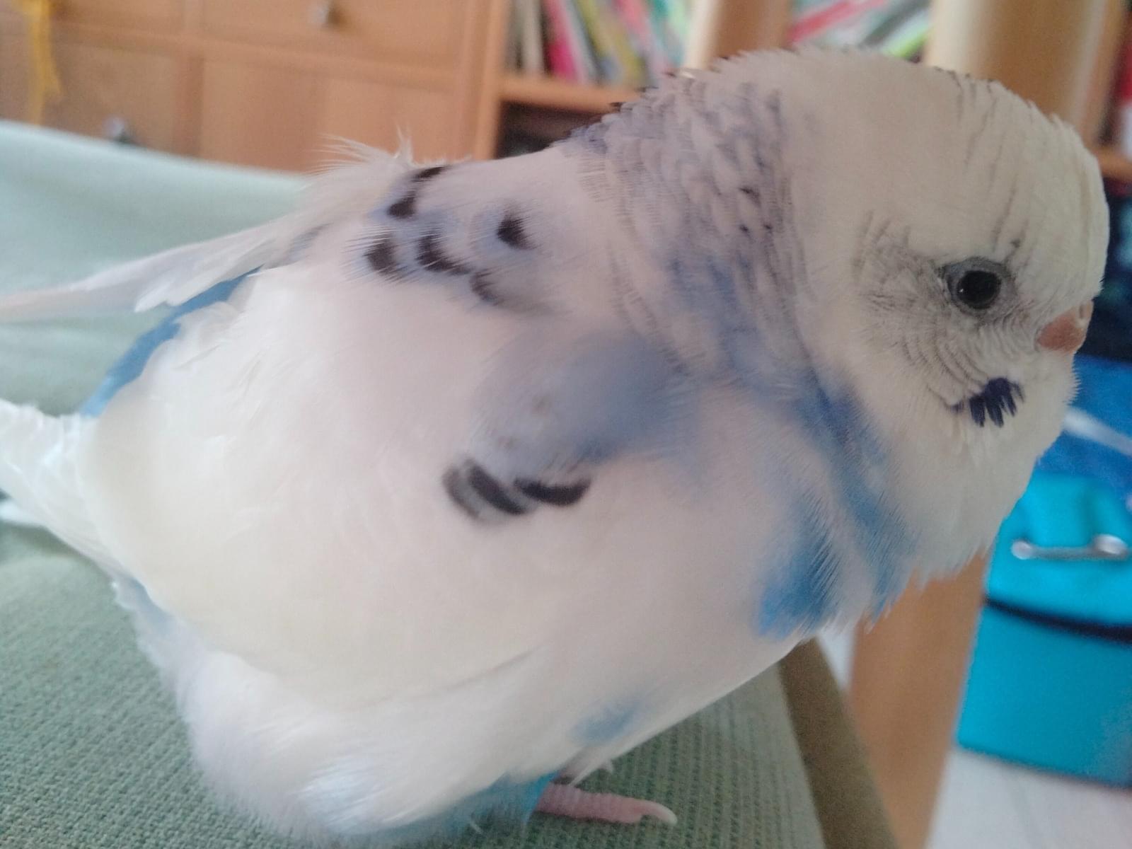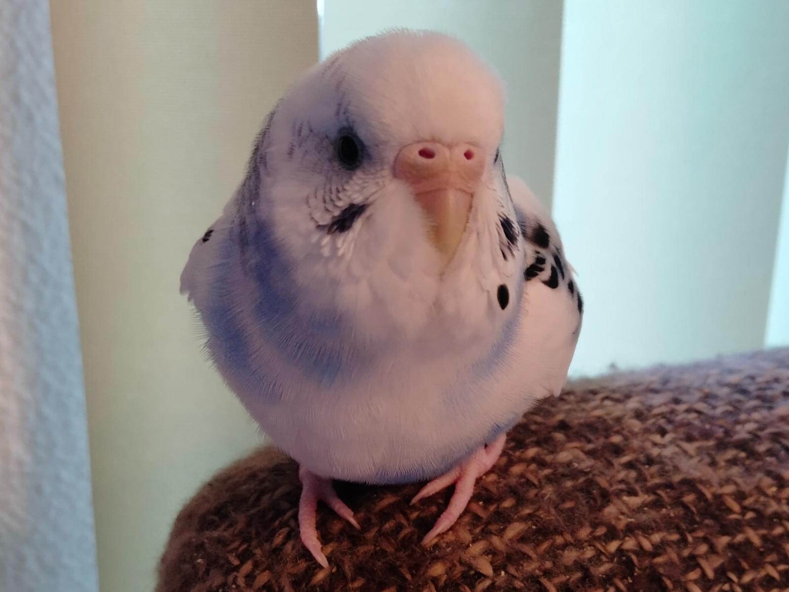 ほぼ白で少し青の羽色が入ったセキセイインコを探しています。左頬だけに丸いポッチがあります。
