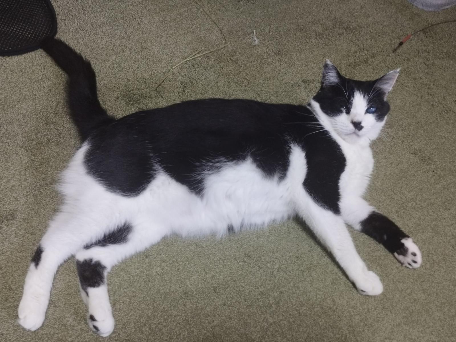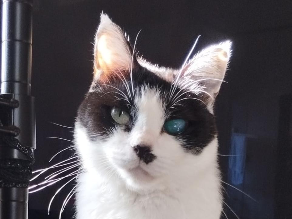 ・左目がみえていません。(一見オッドアイに見える)白黒ハチワレ。鼻が黒い