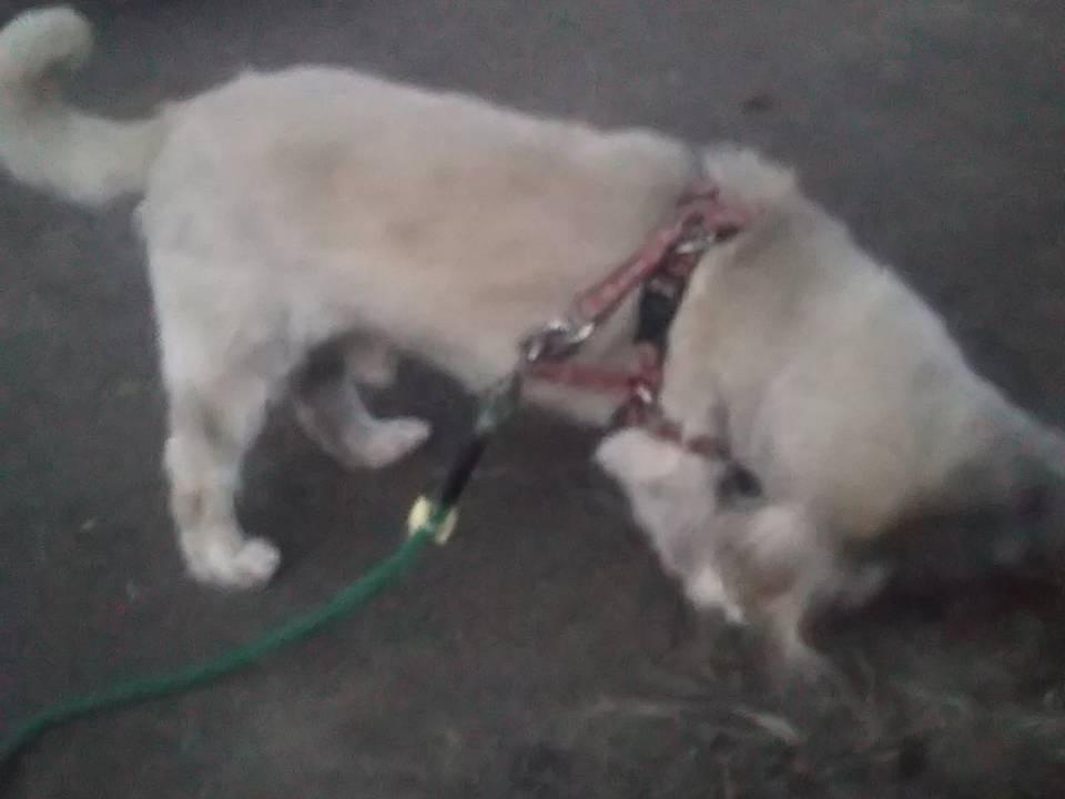 老犬で足が弱っており右寄りにヨタヨタと歩きます。