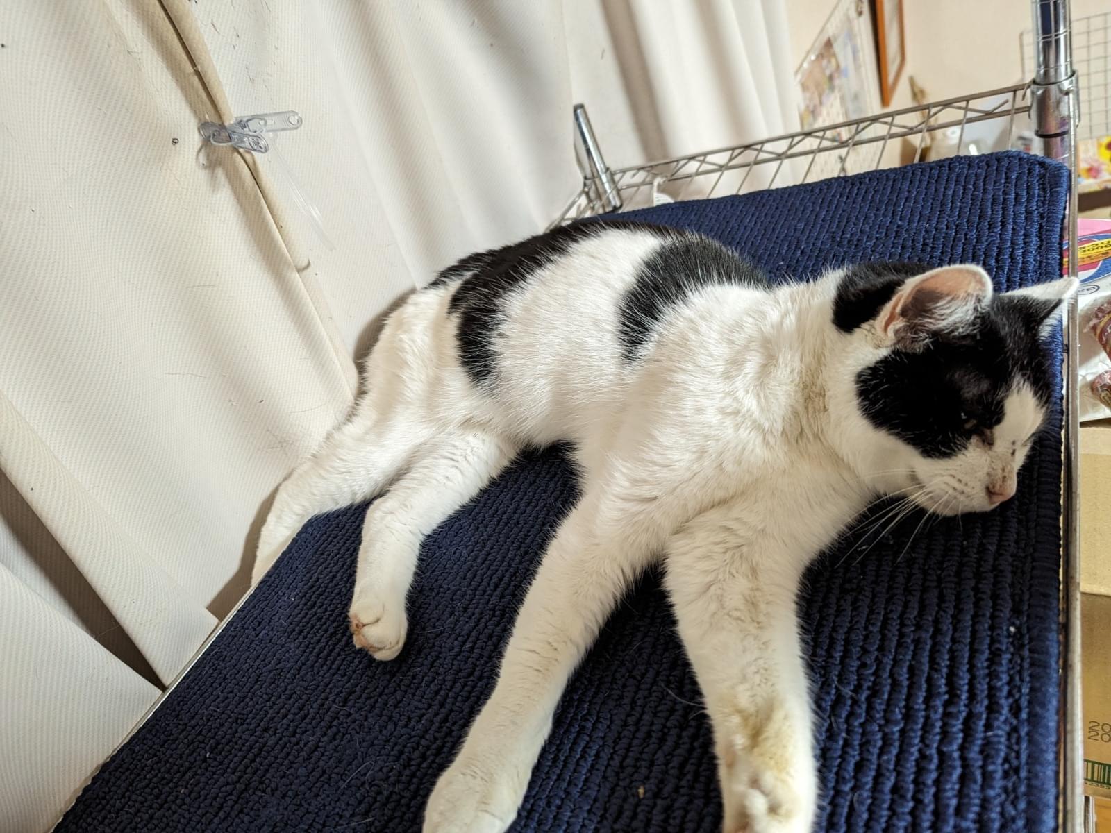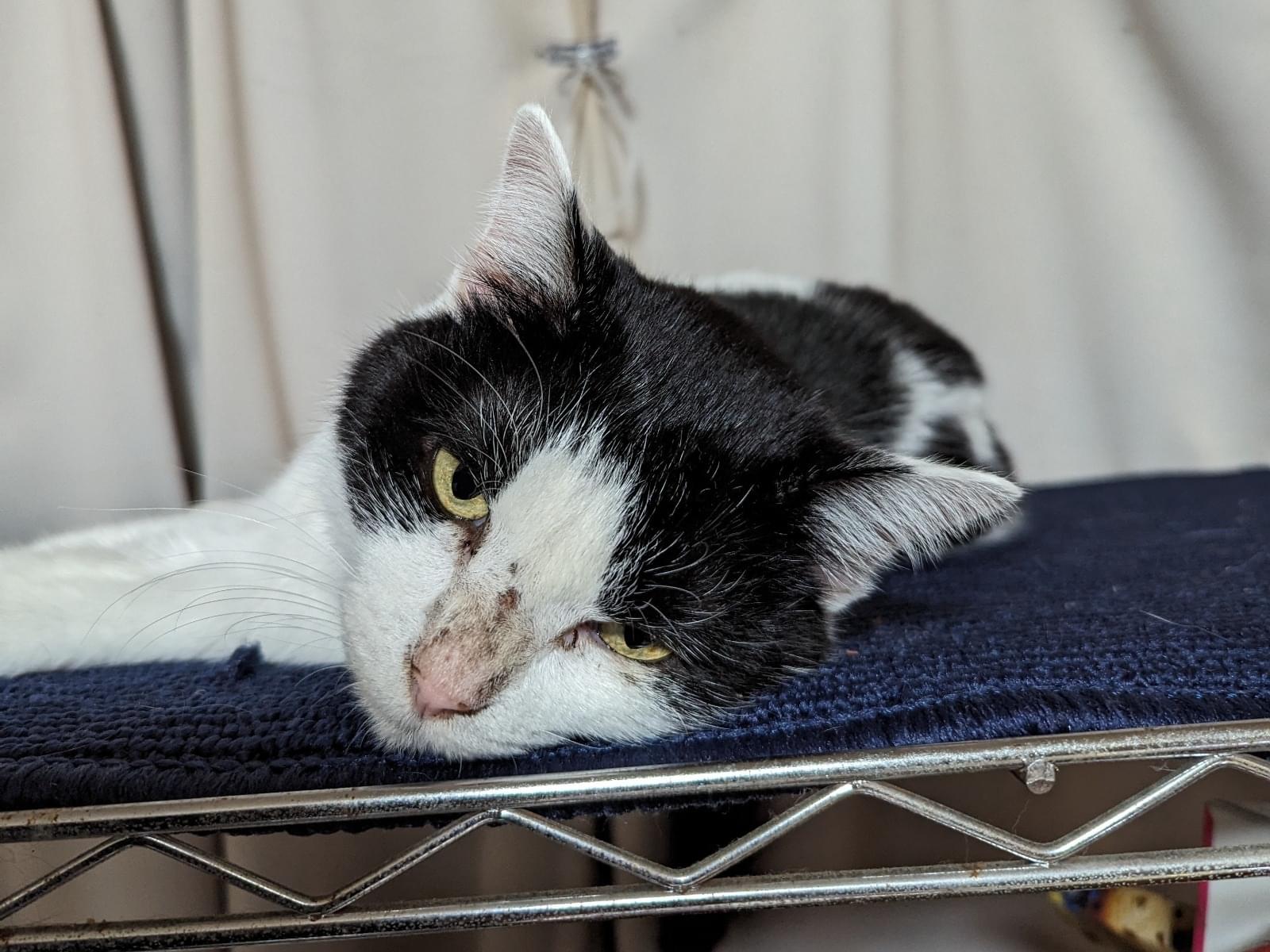 白黒のハチワレで耳が白い人懐こい性格の猫を保護しました