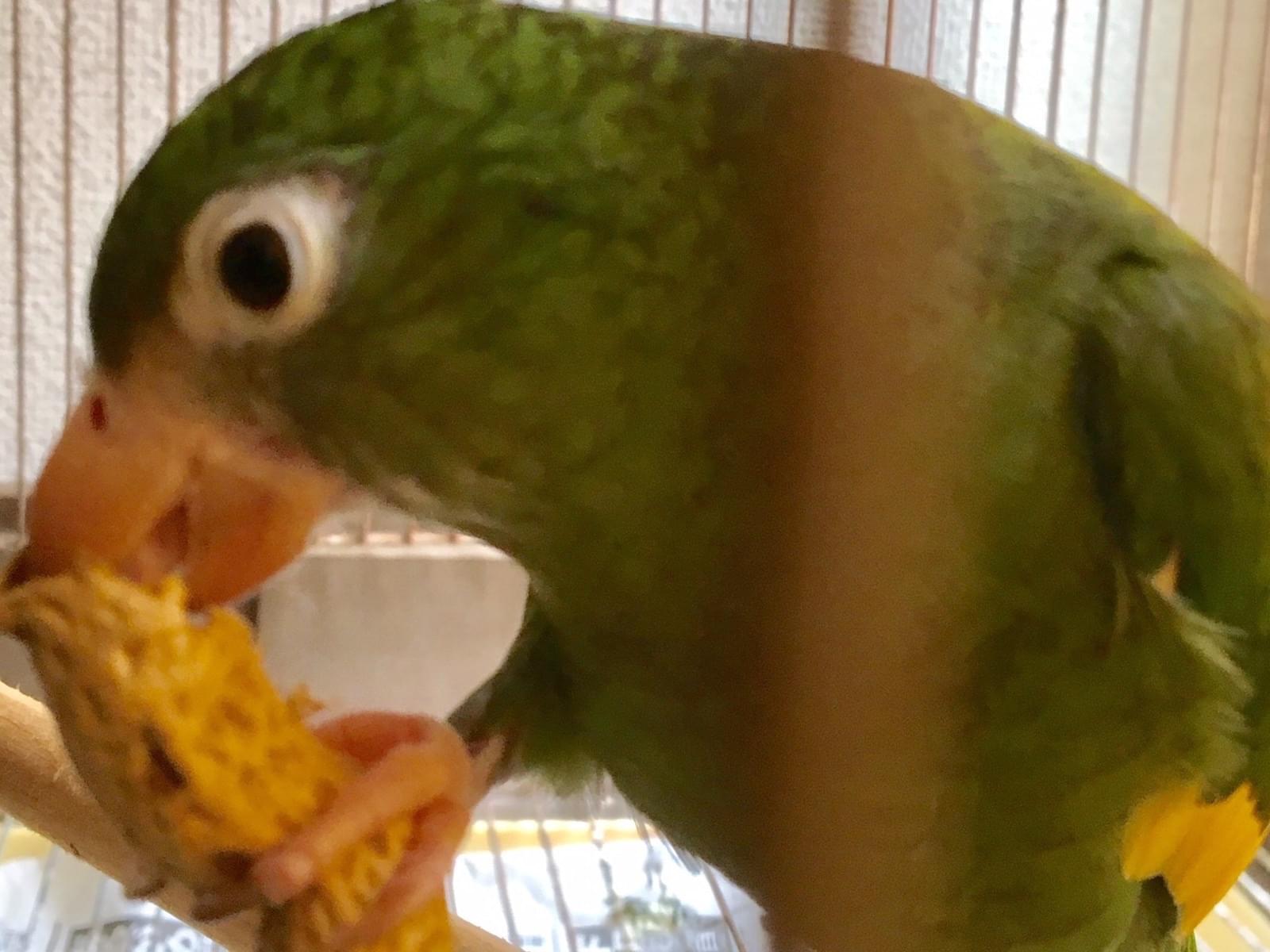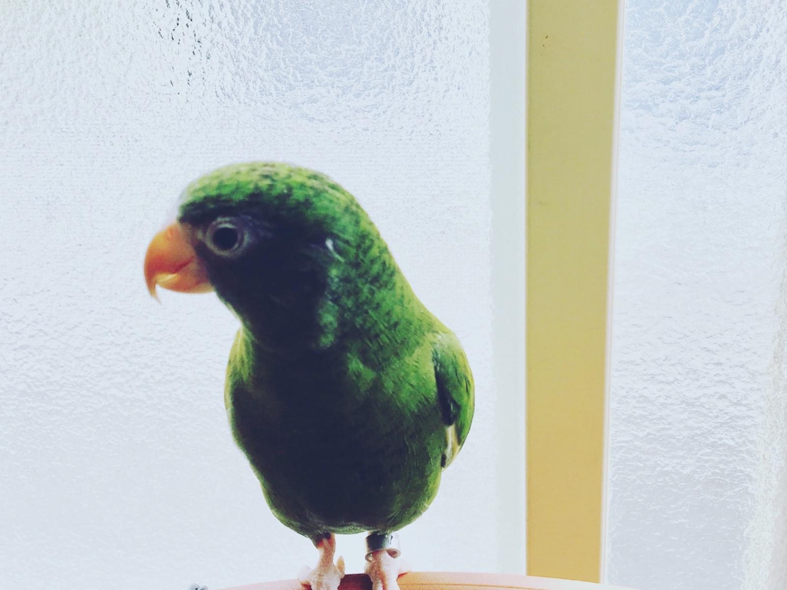 グリーンのソデシロインコです。