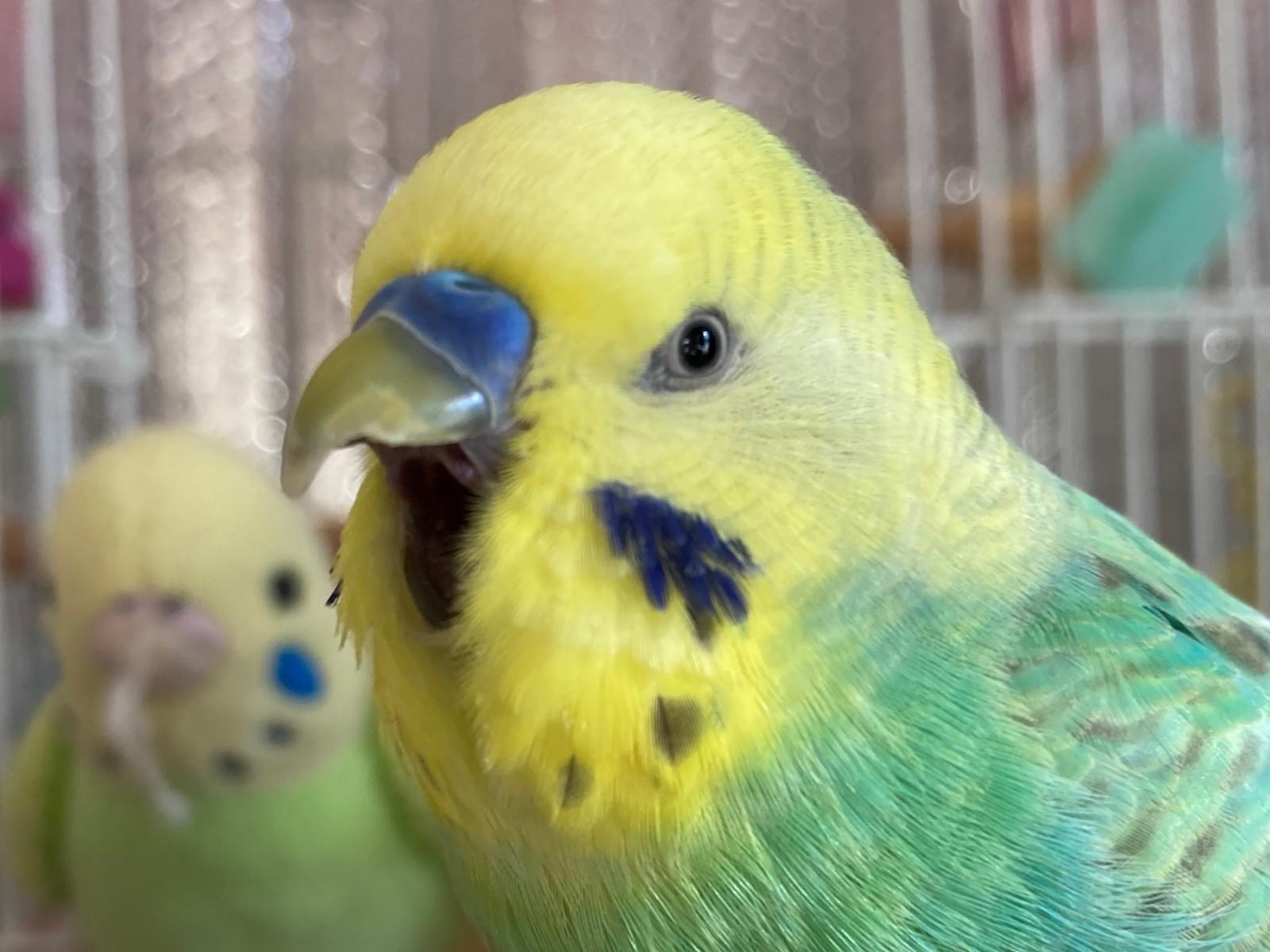 頭が黄色、体が緑色のセキセイインコレインボーを探しています!!