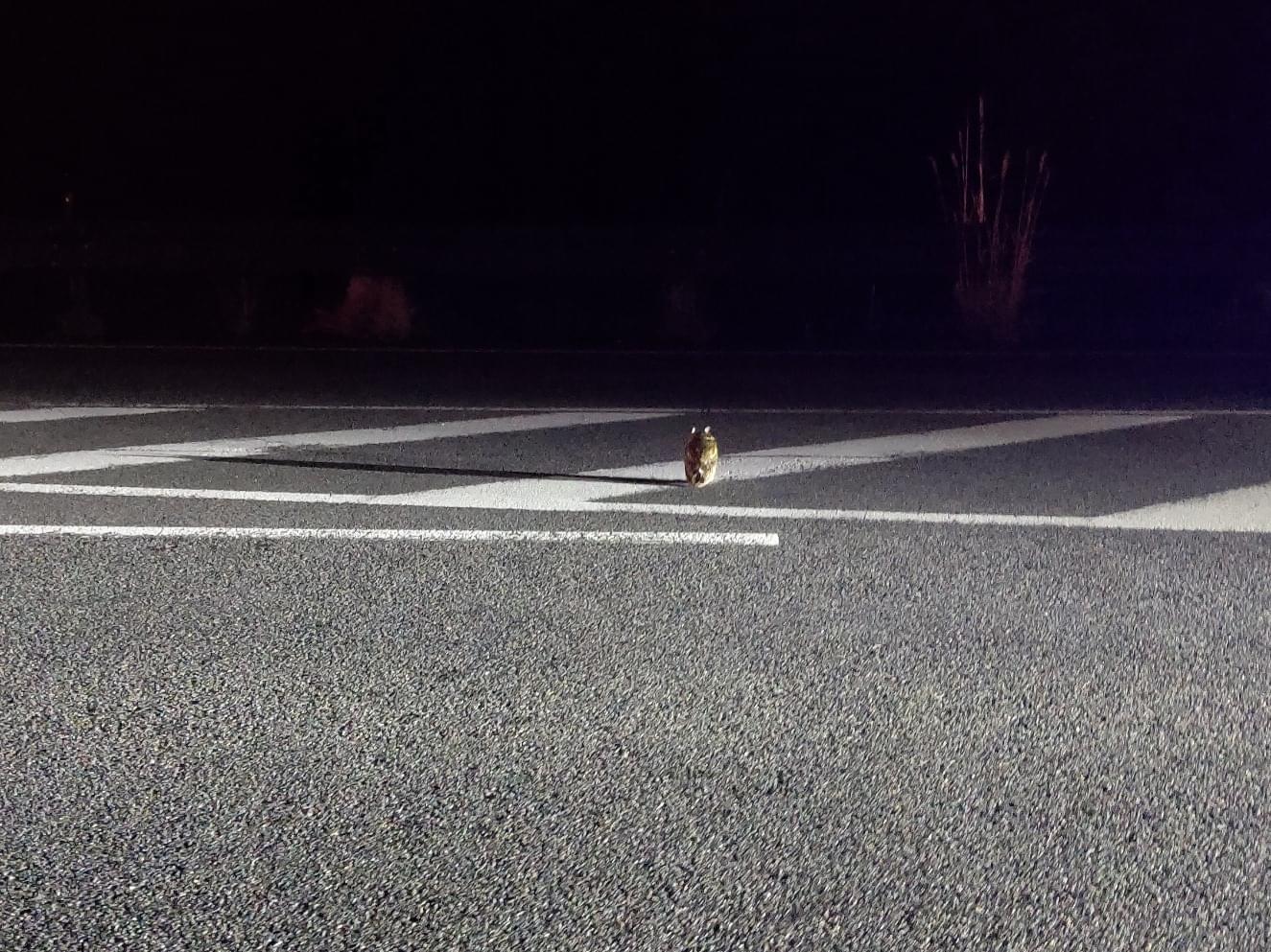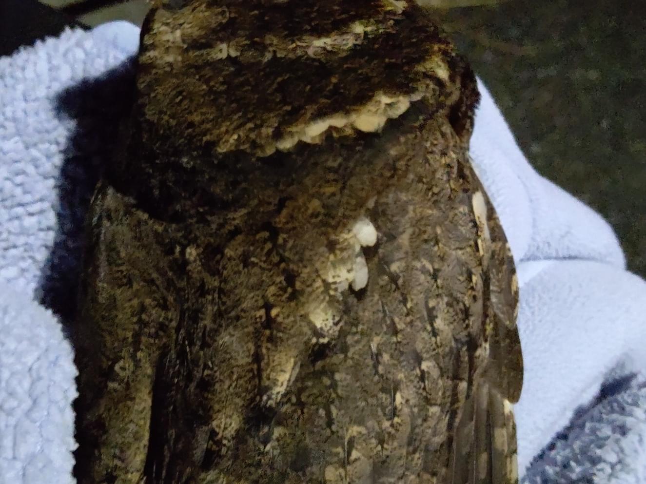 茶色い小型フクロウ(ミミズク、コノハズク)目撃。道路の真ん中で車にひかれることを危惧し拾い上げた。そのまま保護するつもりだったがローソンの駐車場にて再び飛び立ってしまった。ローソンの駐車場〜隣の林にいる可能性あり。