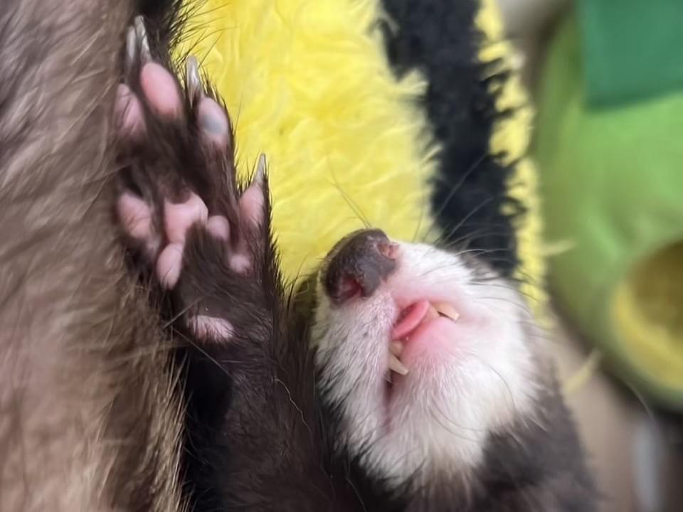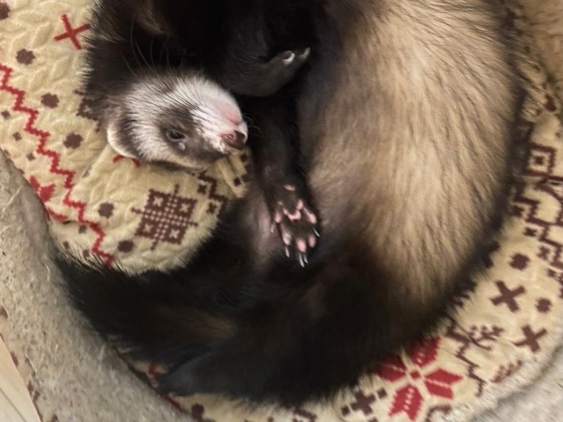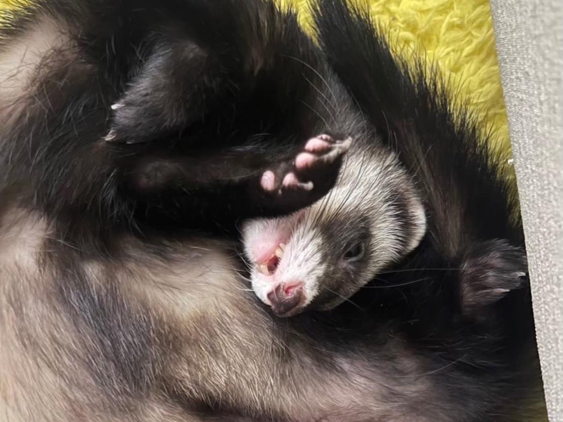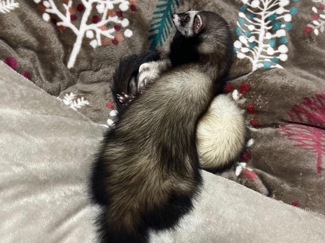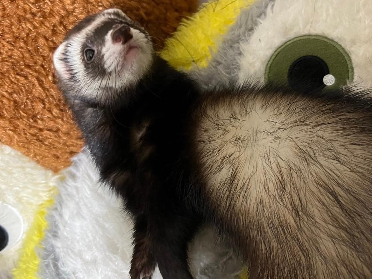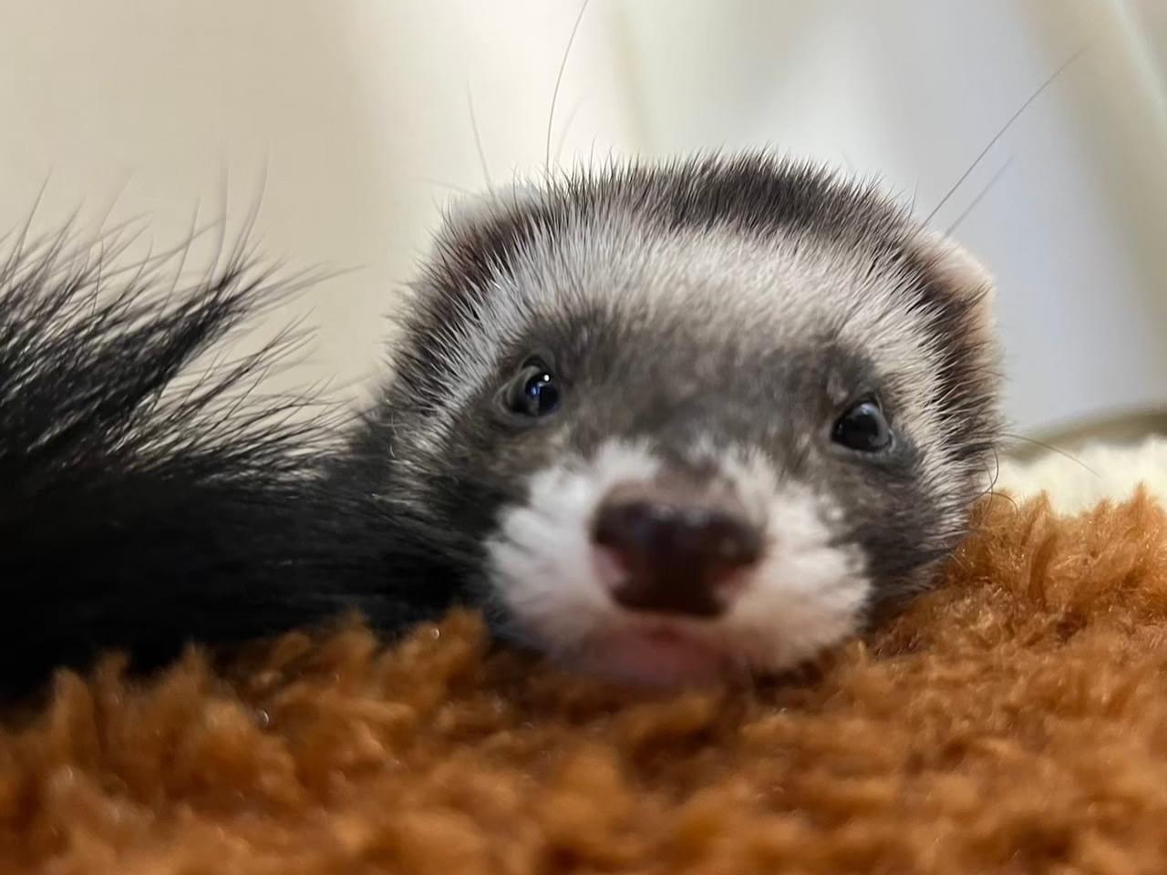 鼻は黒、しっぽの毛は黒くてしっかりしています。