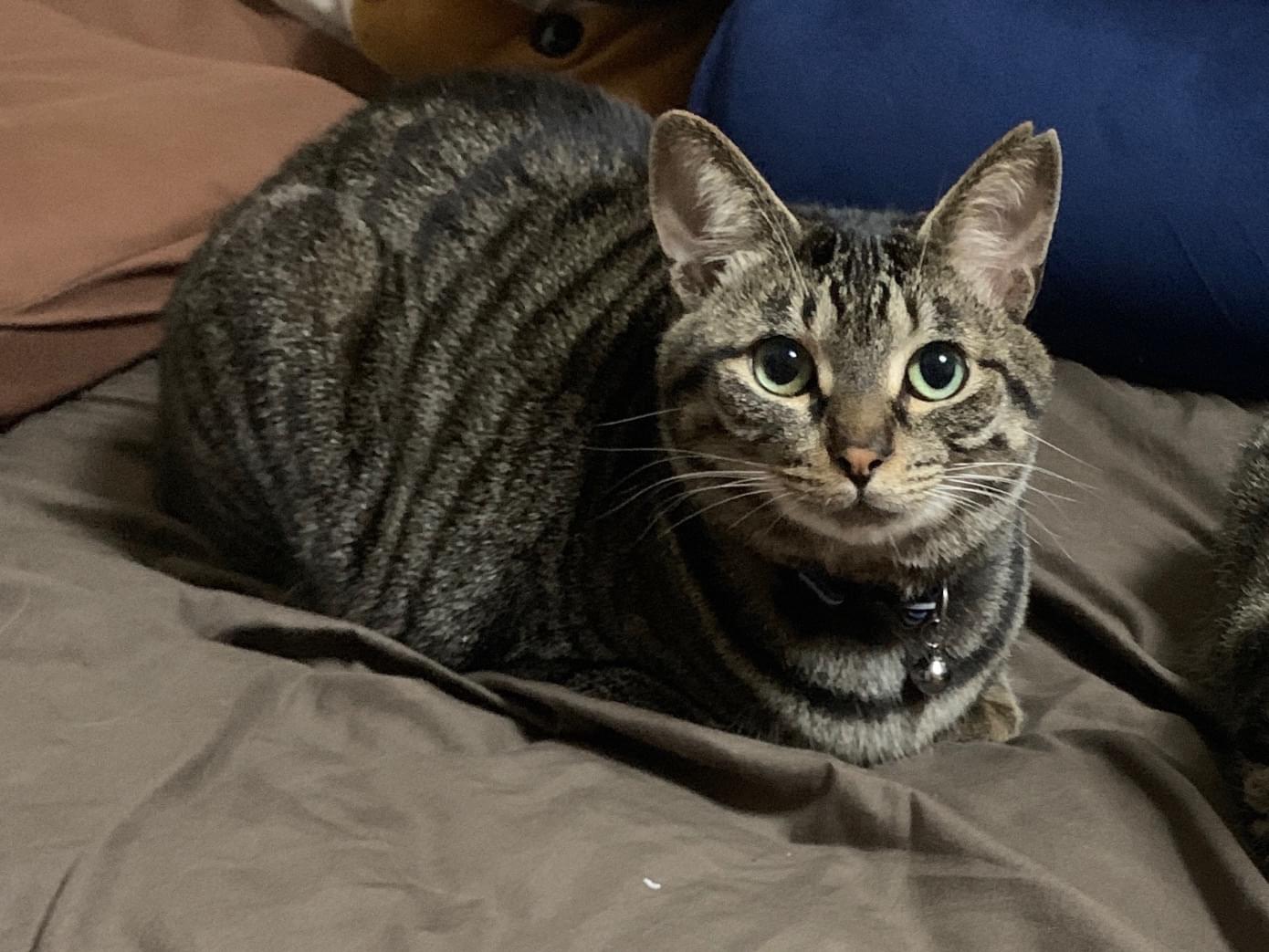 片耳桜の青いチェック柄の首輪をしたキジトラ探してます