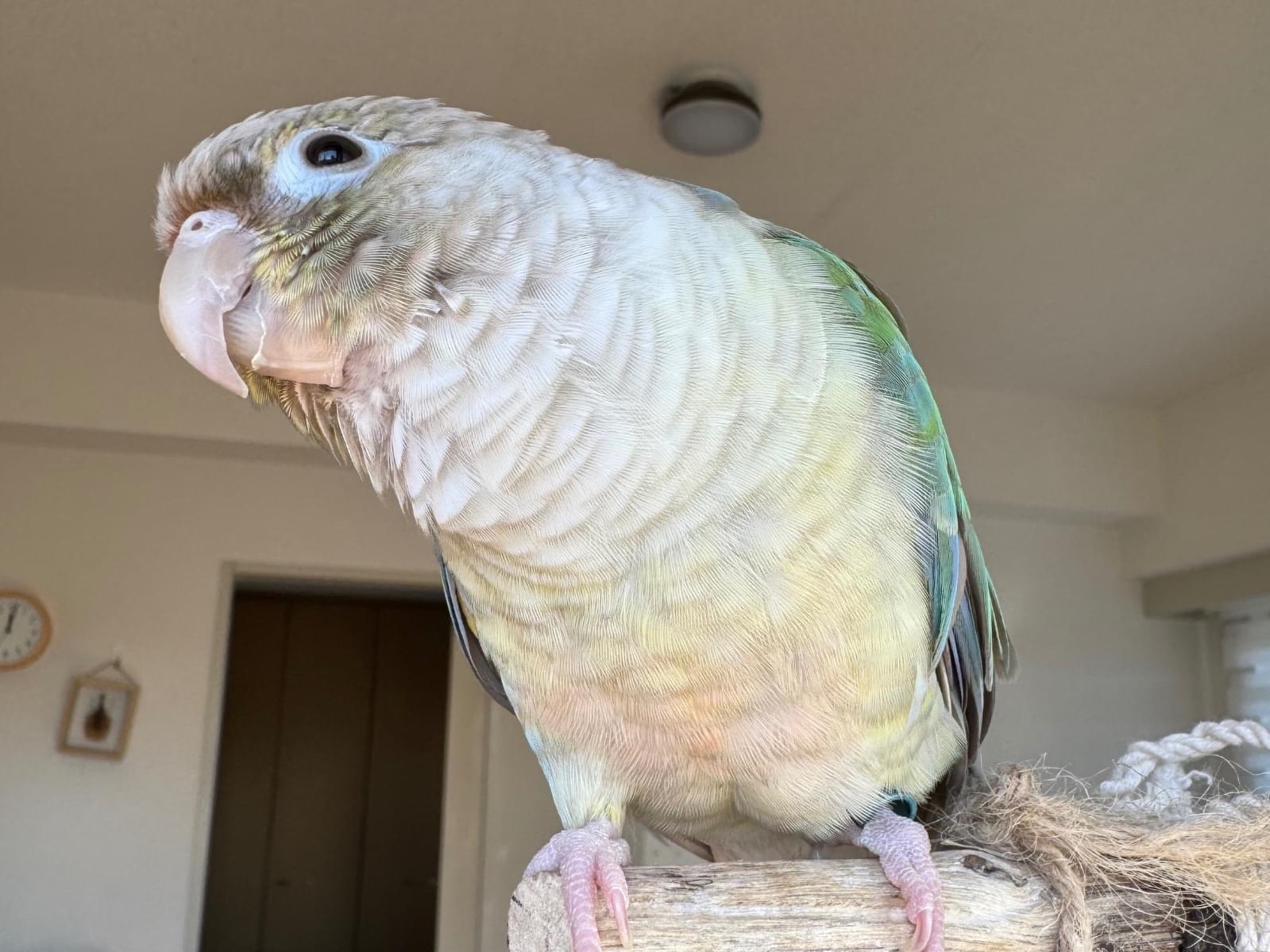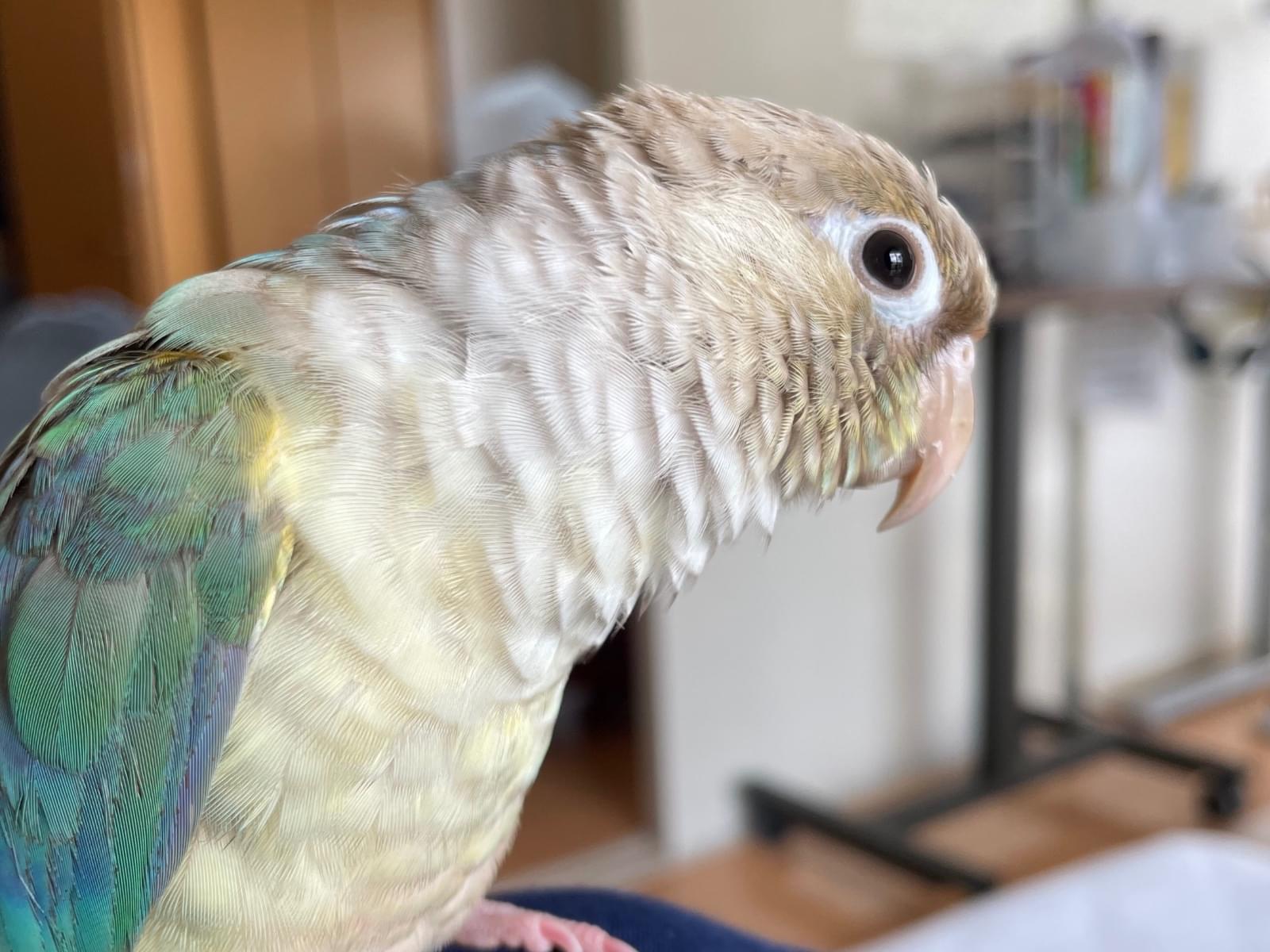 大事な家族なのに、飼い主の不注意でベランダから外に出てしまいました。人に慣れていて、肩や手に止まります。