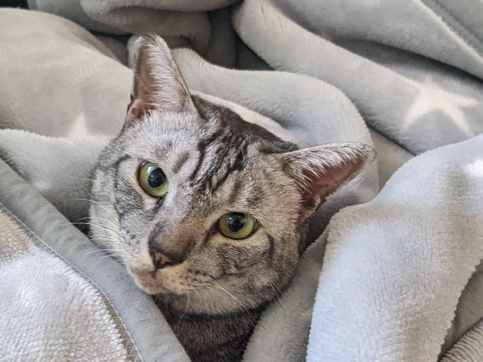 グレーと黒のサバトラ猫を探しています。去勢済(右耳カット)