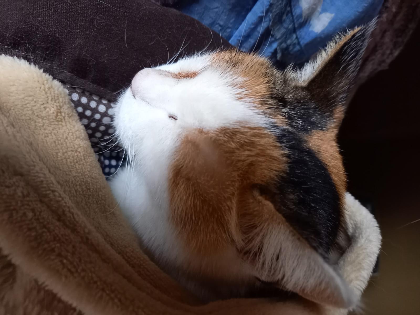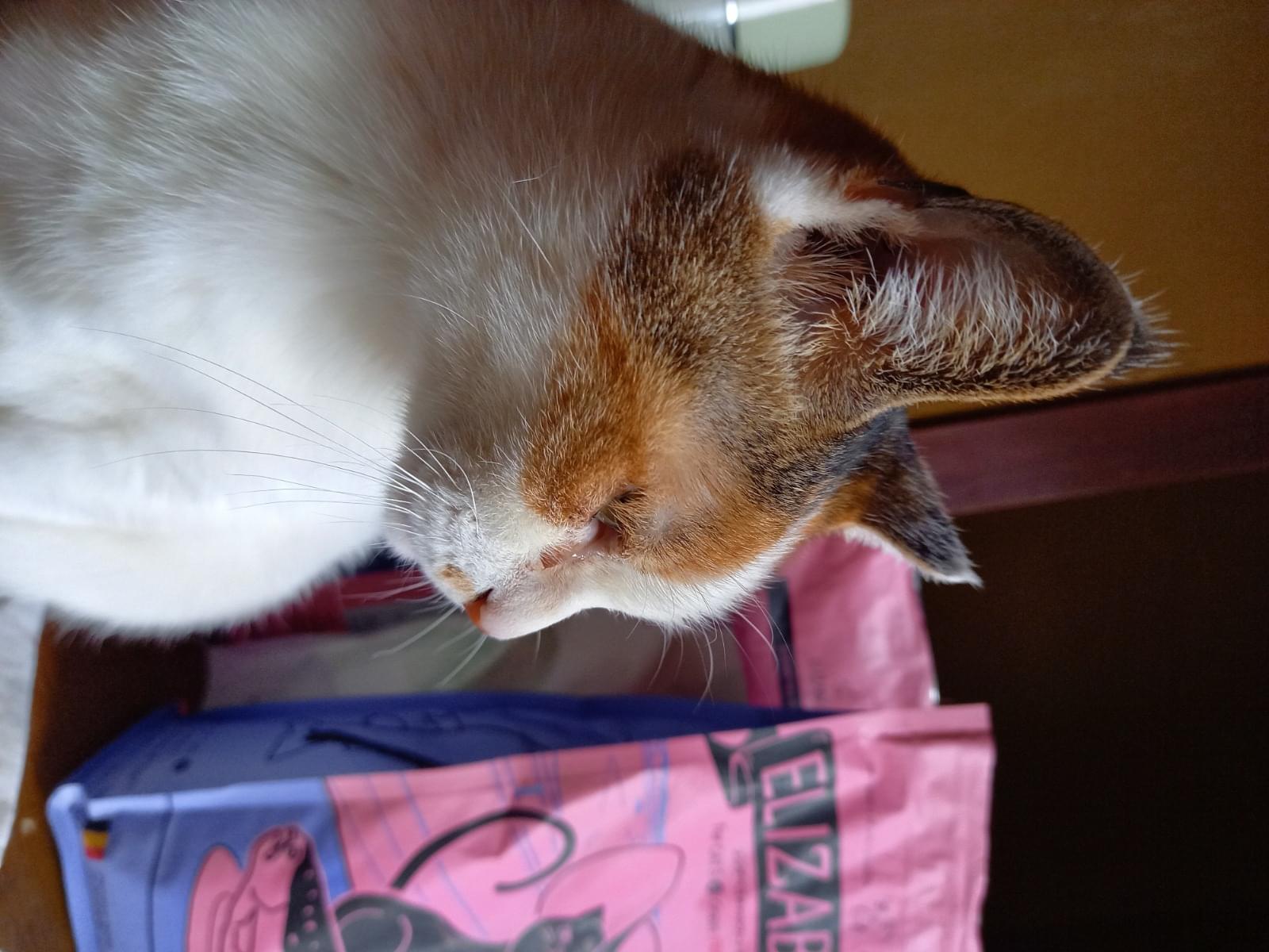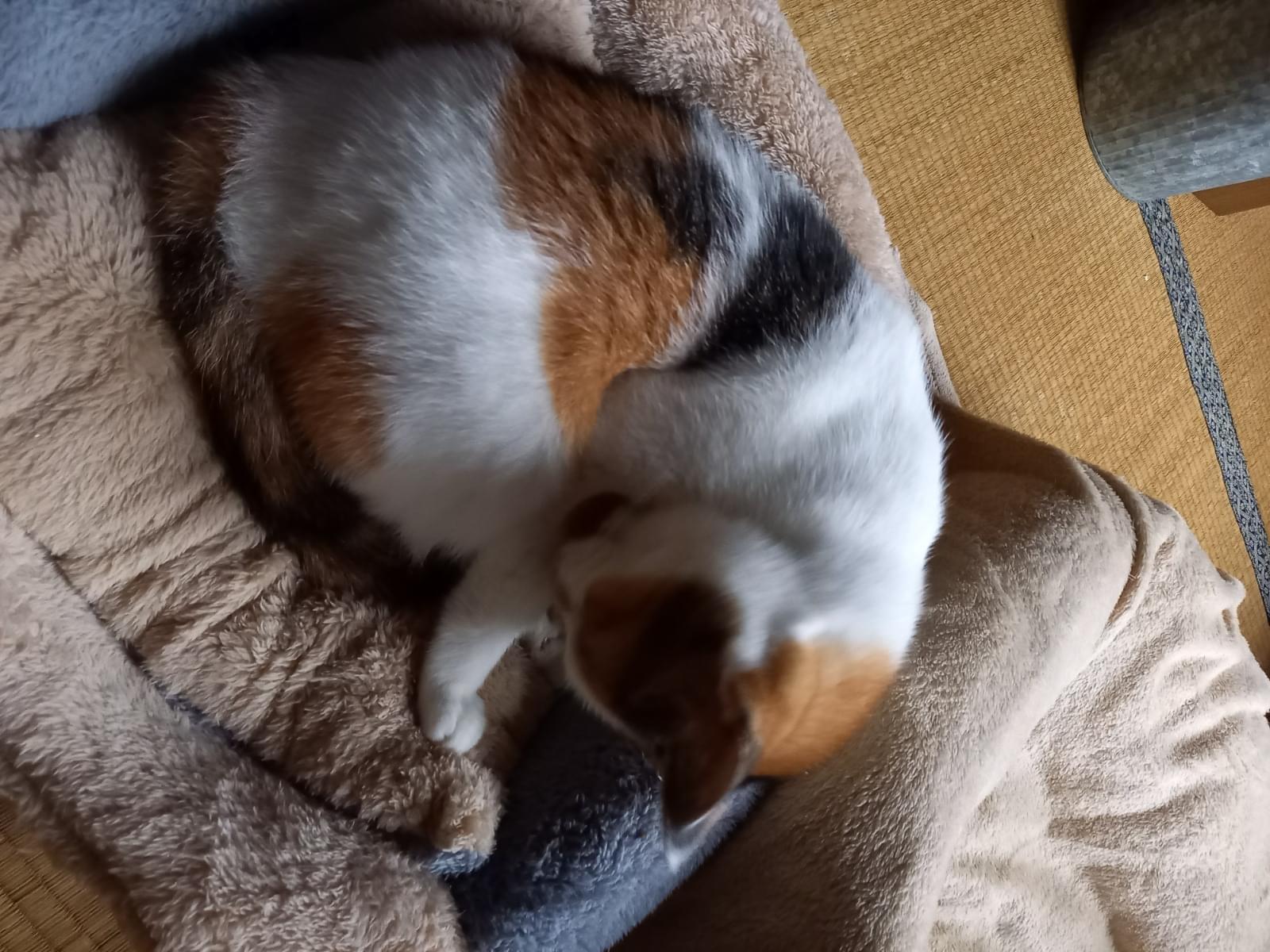 風邪を引いていると思われ目から赤い涙が出ています。首輪は無し。震災で怯えています。歯がありません。