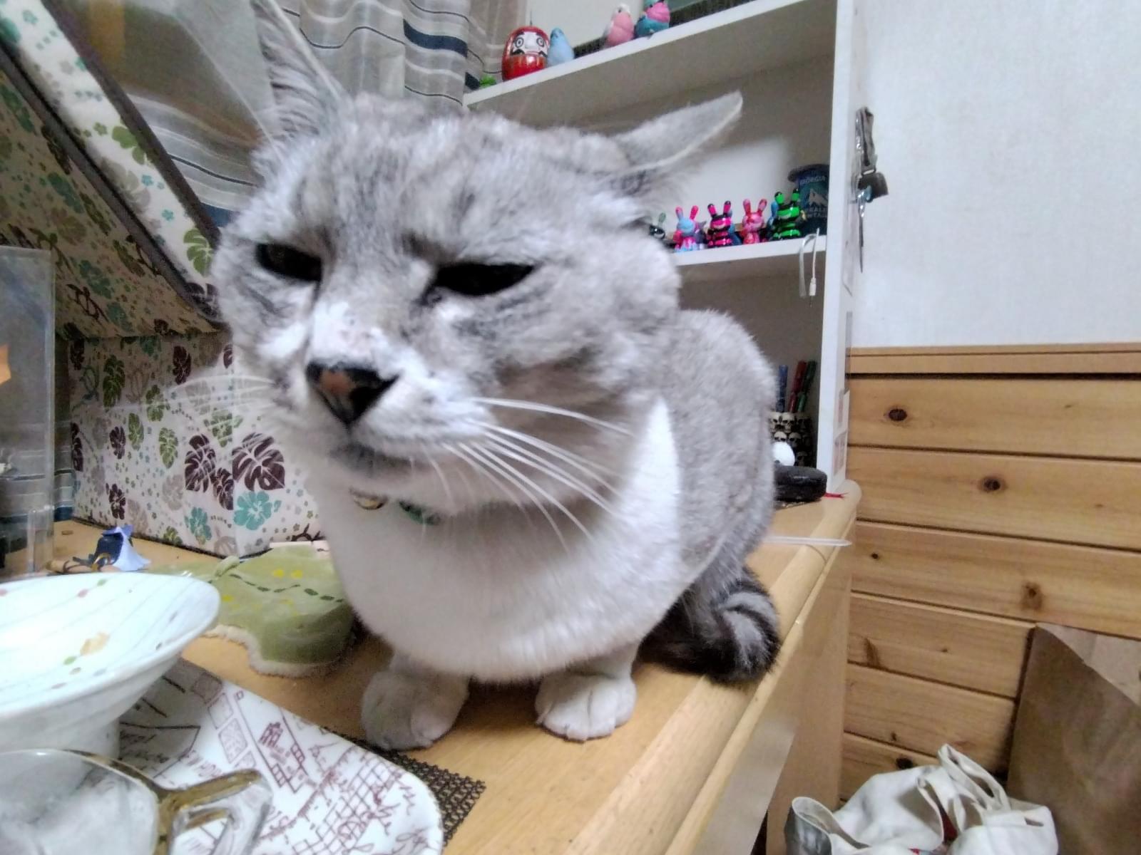 目は半分ぐらいしか開けません。(病気とかではなく、本人の意思です)