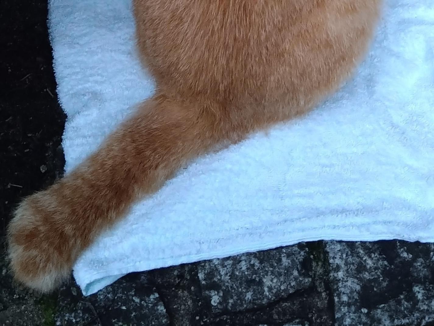 体色は茶トラ 尻尾の裏の先が少し白く、