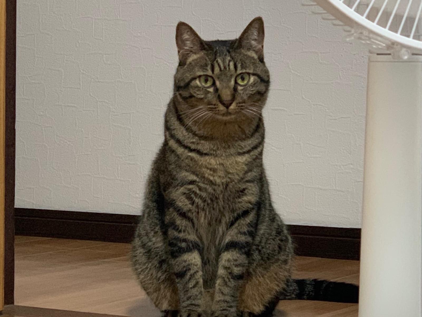 キジトラ特有の茶色の毛に黒いしま模様です。少し怖がりな性格です。目はまん丸で、しっぽは太め、体重は5kgぐらいで痩せておらず、お腹が少しダブついています。首輪など身に付けていたものはありません。去勢済みのオス猫です。