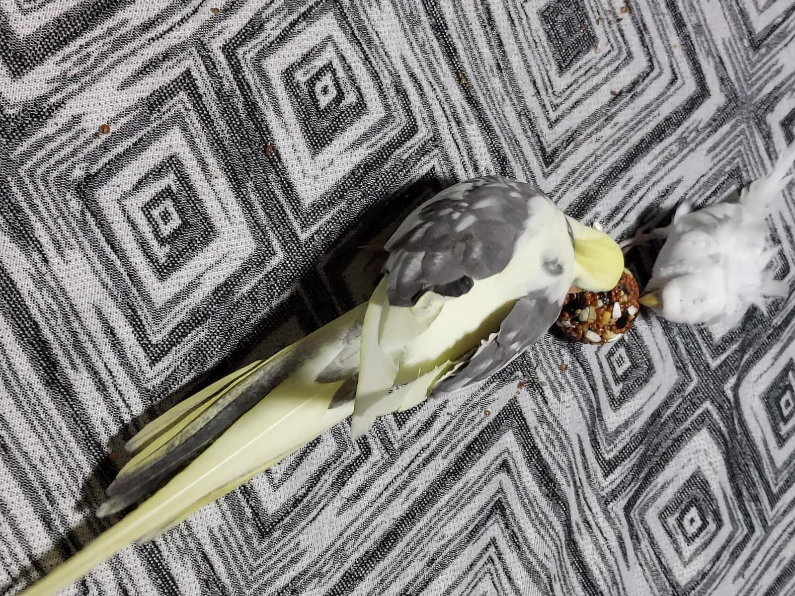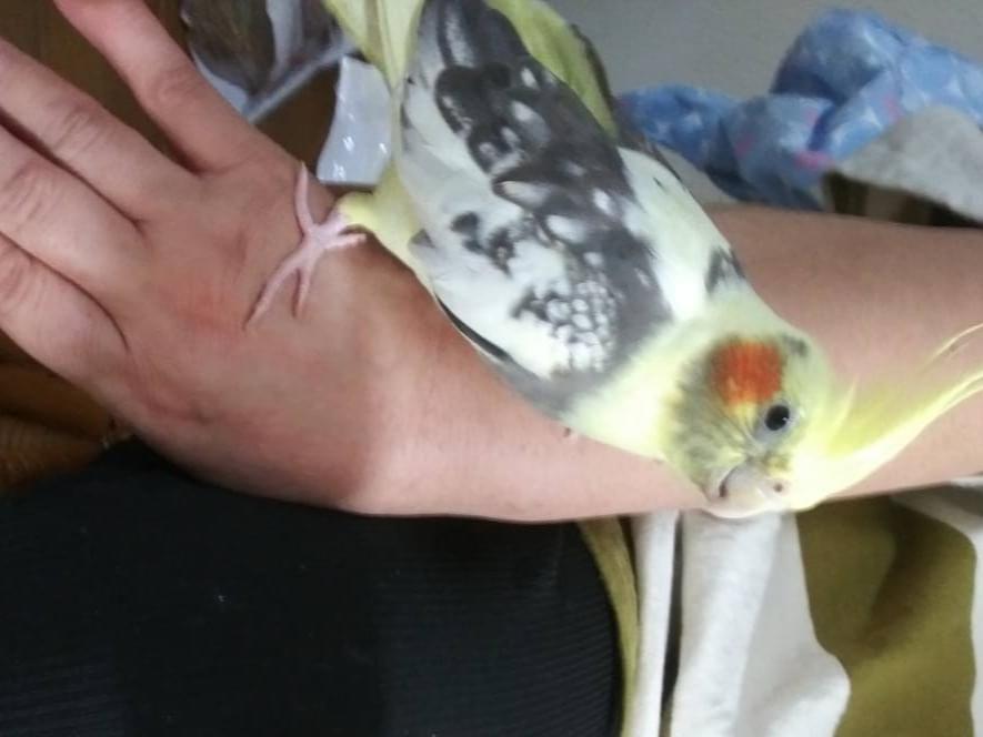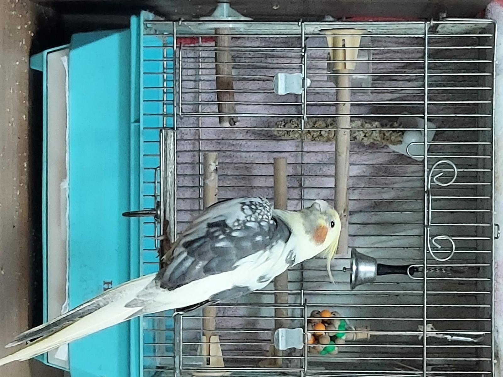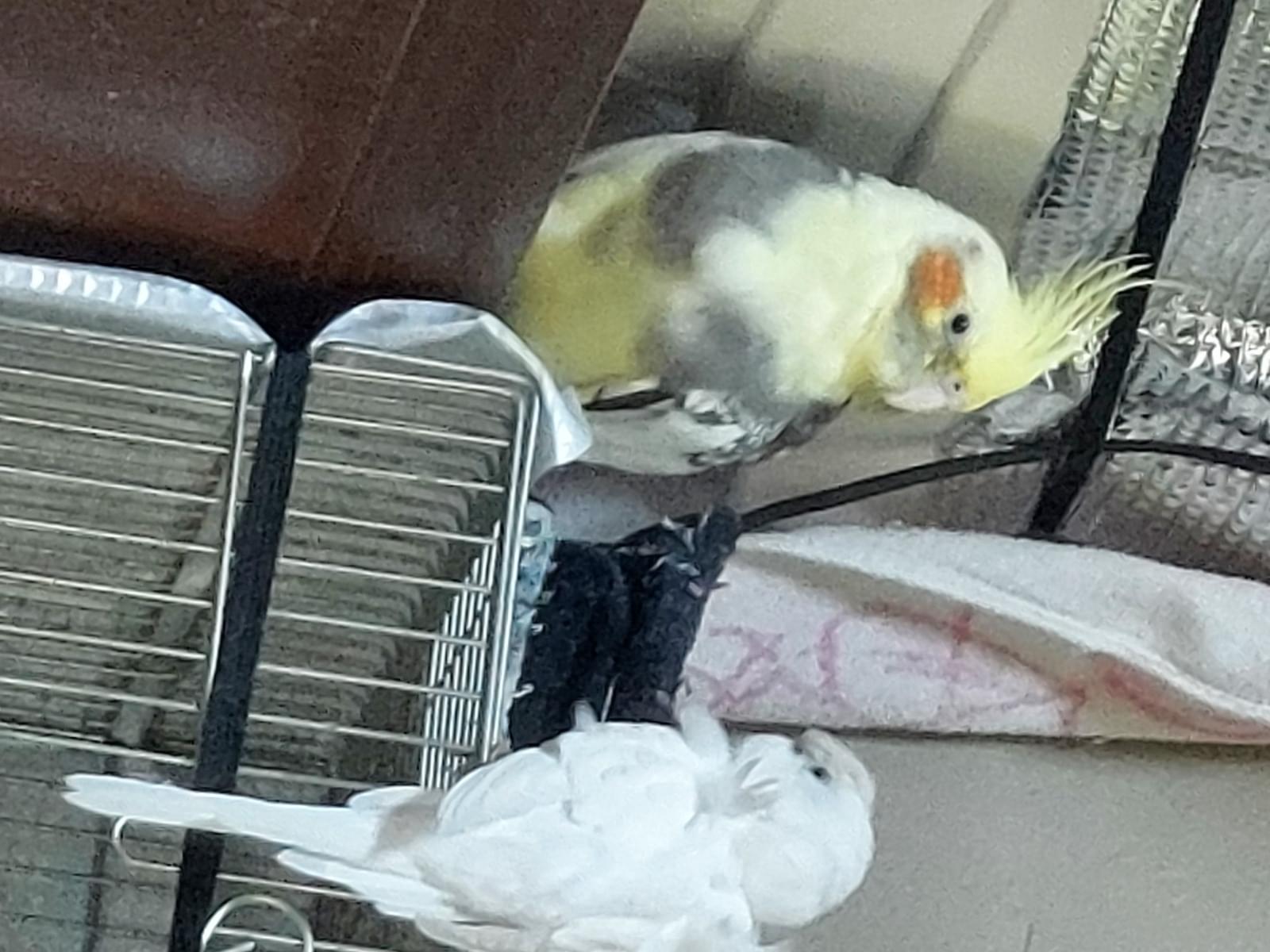 オカメインコ黄色でオレンジのほっぺで嘴付近に少しグレー模様