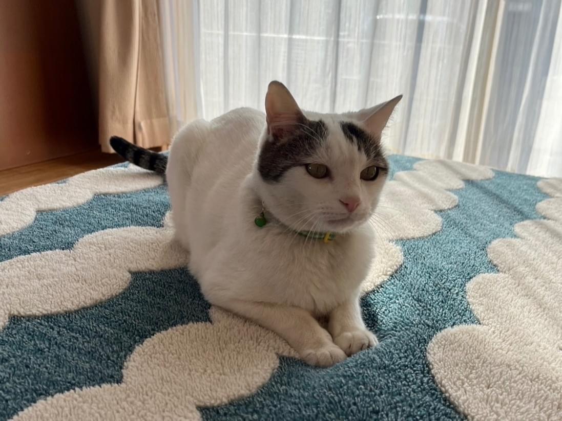 緑のチェック模様の首輪をしていますが、外れるタイプのものなので取れているかもしれません。