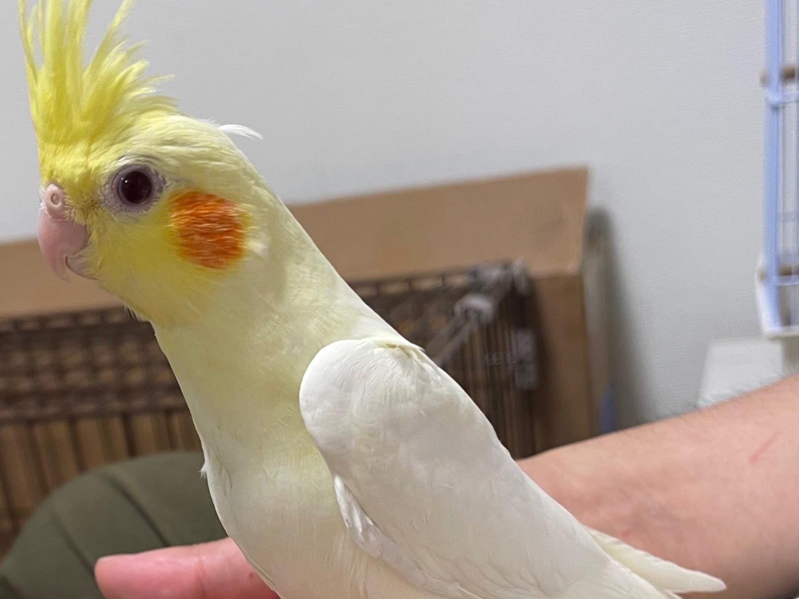 黄色と白のオカメインコが2月24日のお昼頃に脱走し、行方不明となりました。