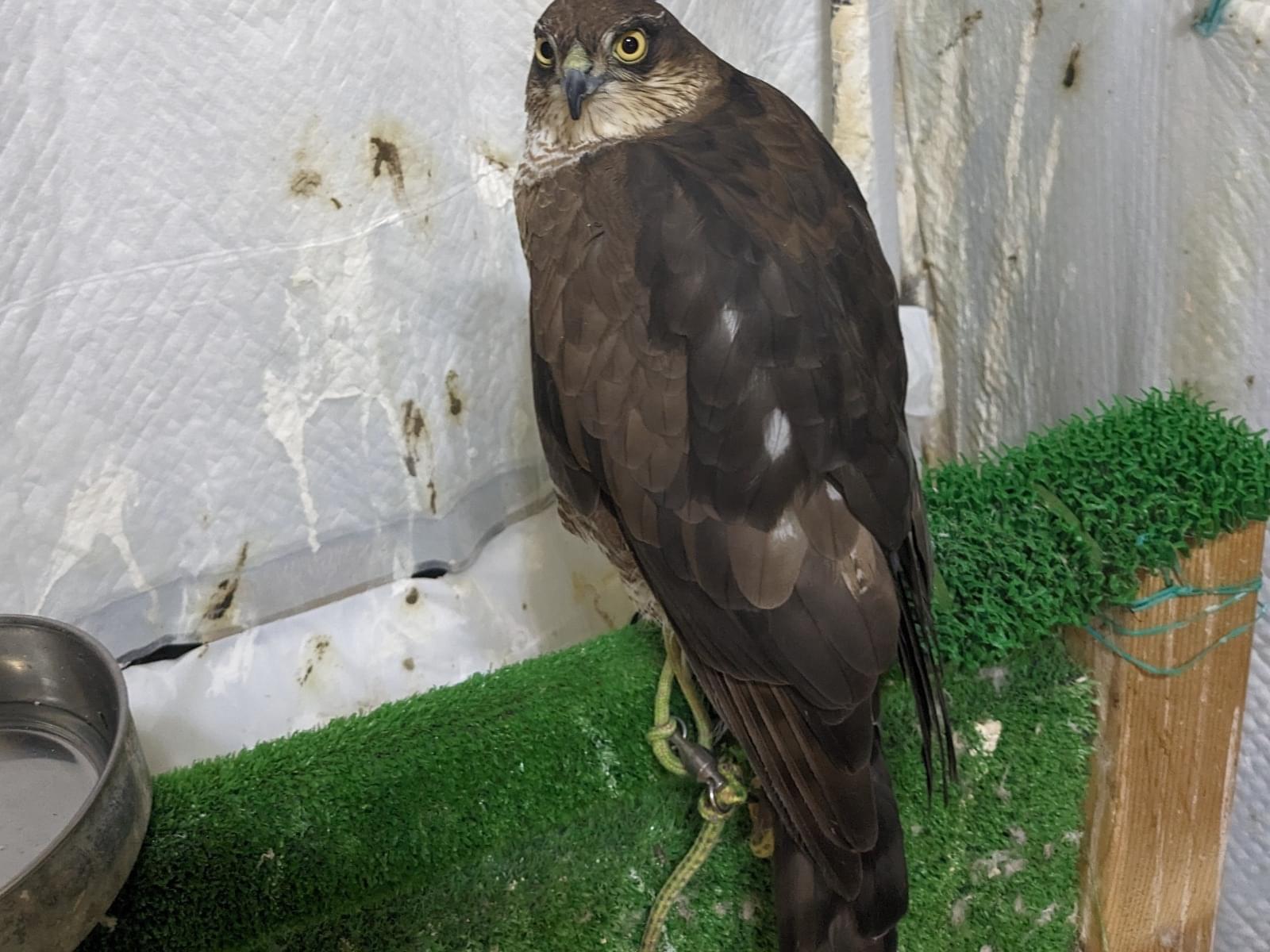 2月28日に日光浴中のハイタカを回収しようとしたところ暴れてしまいその衝撃で紐リーシュが取れてしまい飛んで行ってしまいました。