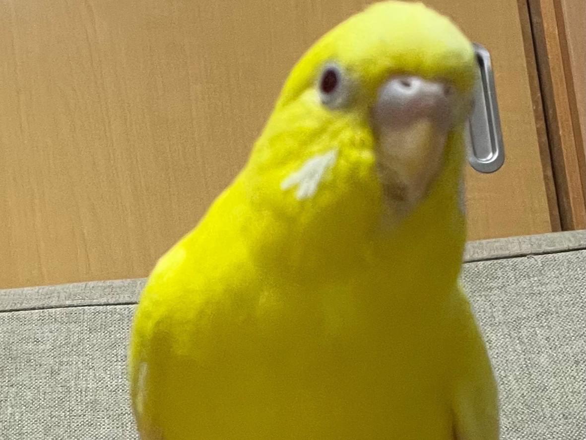 黄色いセキセイインコですがよくゲージで頭を擦りつけて遊んでいるので