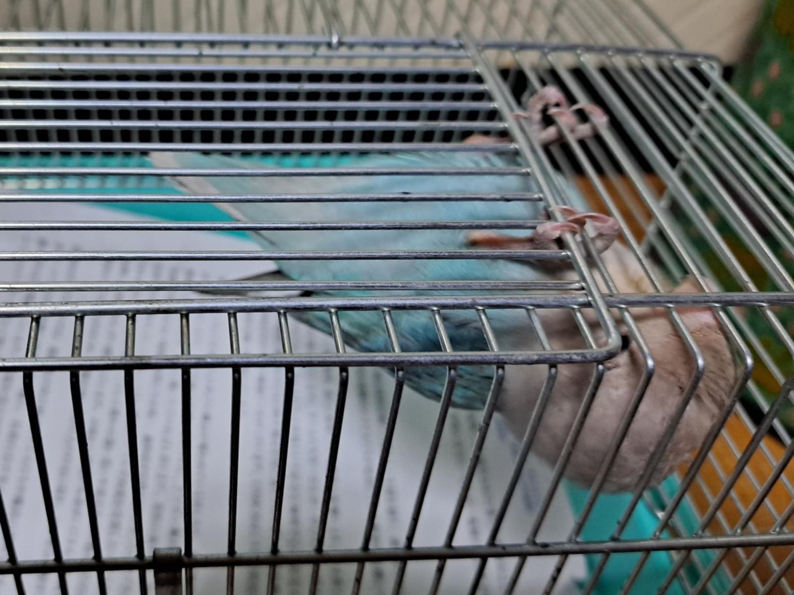 頭がグレー、体がブルー、羽の先は黒っぽい、体長15センチくらいのインコを保護して警察に届けました。