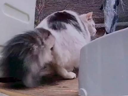 長毛系でまだ子ども猫のように見受けられる見知らぬ猫が、突如現れました。