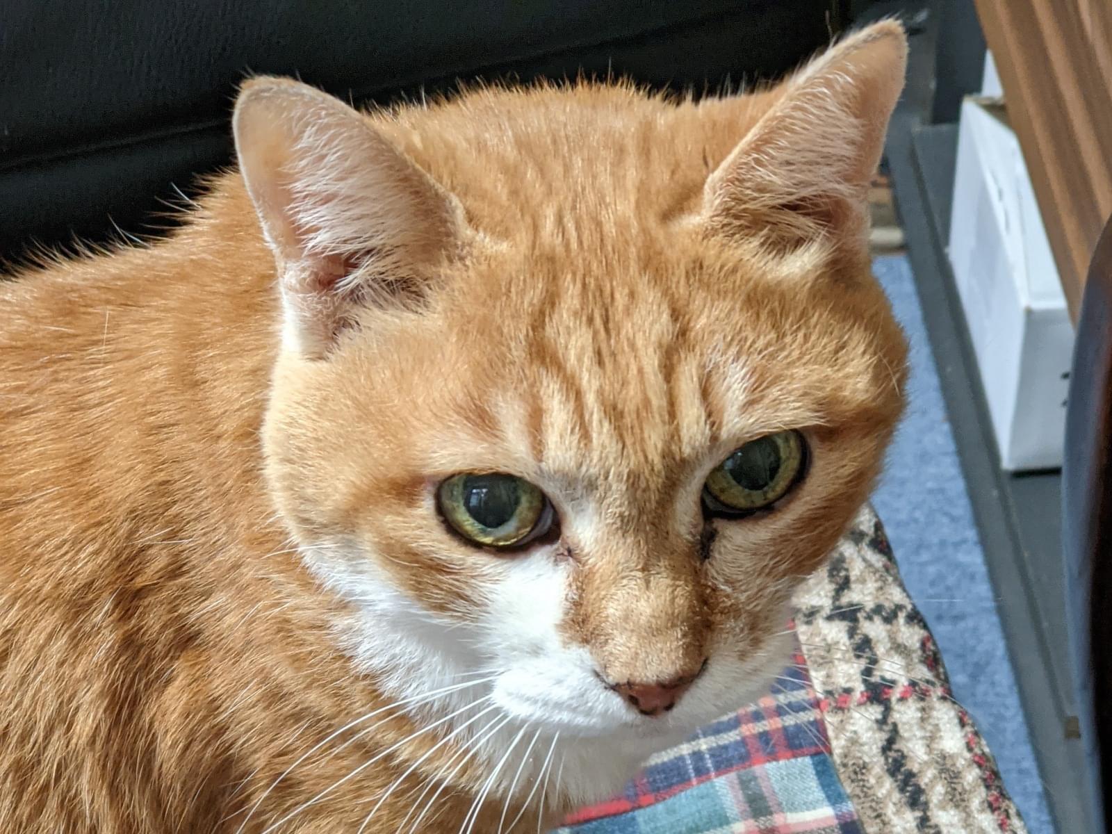 メス茶トラです。 赤い首輪(すず2つ)カウベル風19歳 臆病臆病で警戒心が強い性格をしています。
